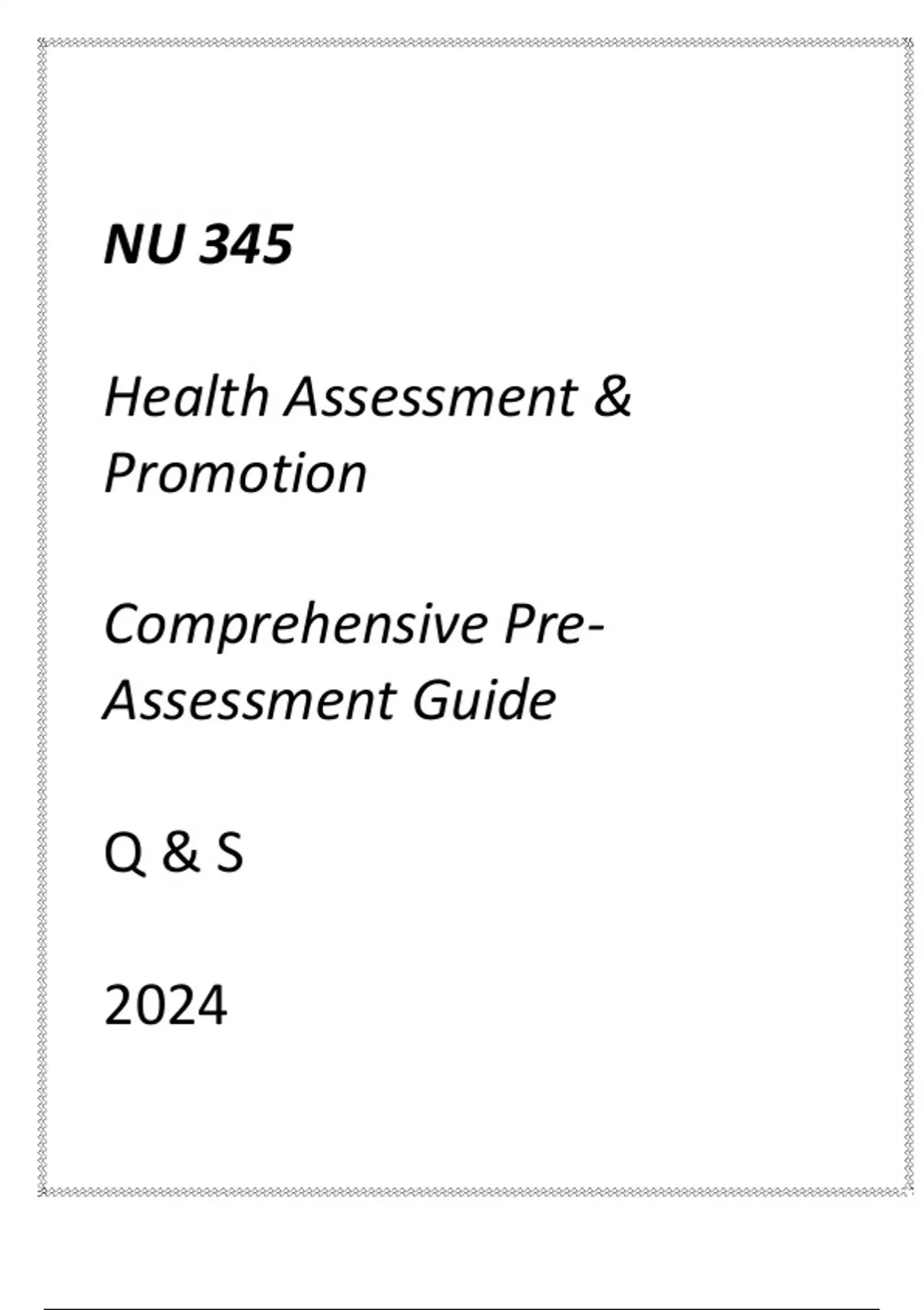 (HU) NU 345 Health Assessment & Promotion Comprehensive Pre-Assessment Guide Q & S 2024v(HU) NU 345 Health Assessment & Promotion Comprehensive Pre-As(HU) NU 345 Health Assessment & Promotion Comprehensive Pre-Assessment Guide Q & S 2024sessment Guide Q & S 2024