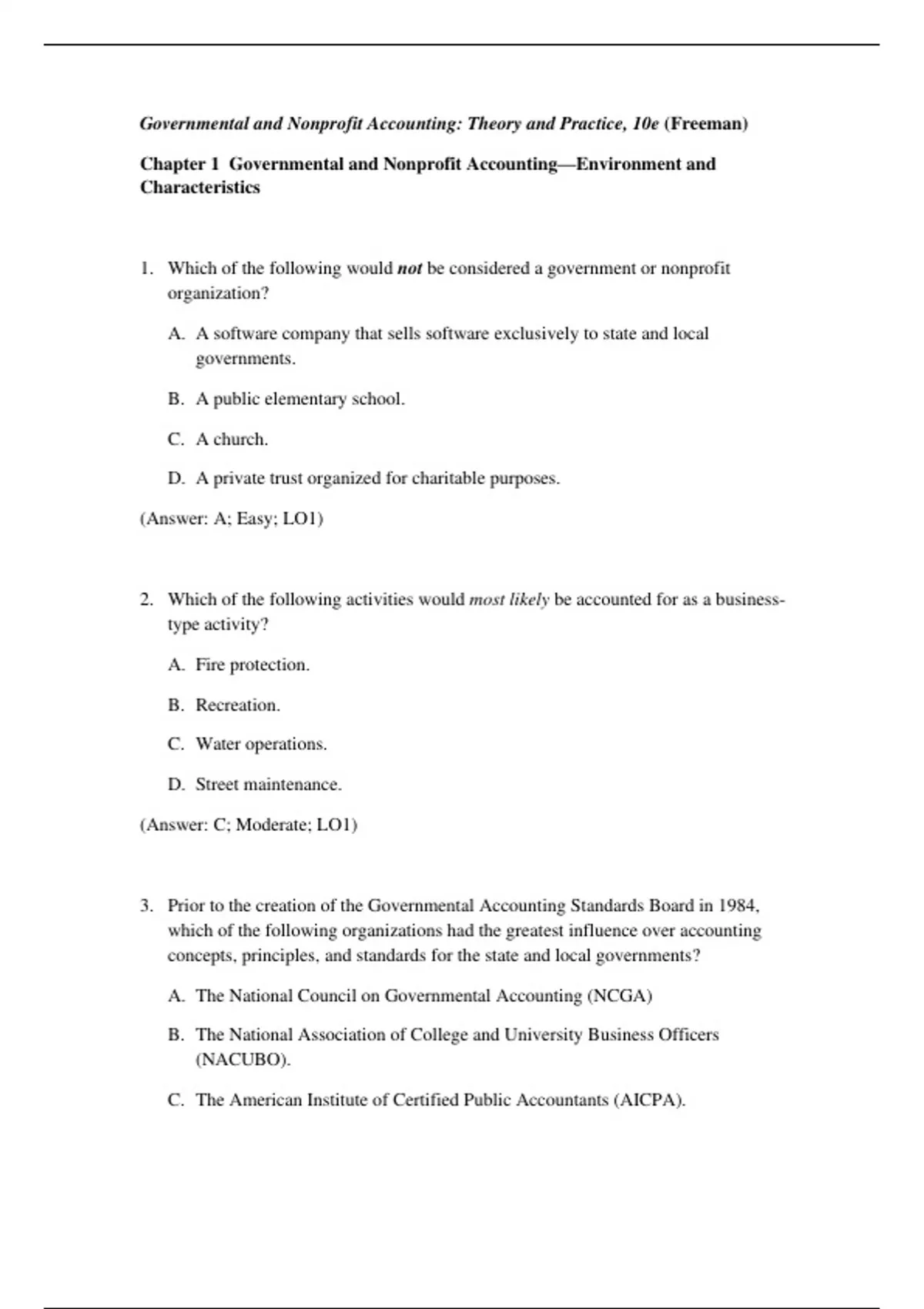 (Answer: A; Moderate; LO1)