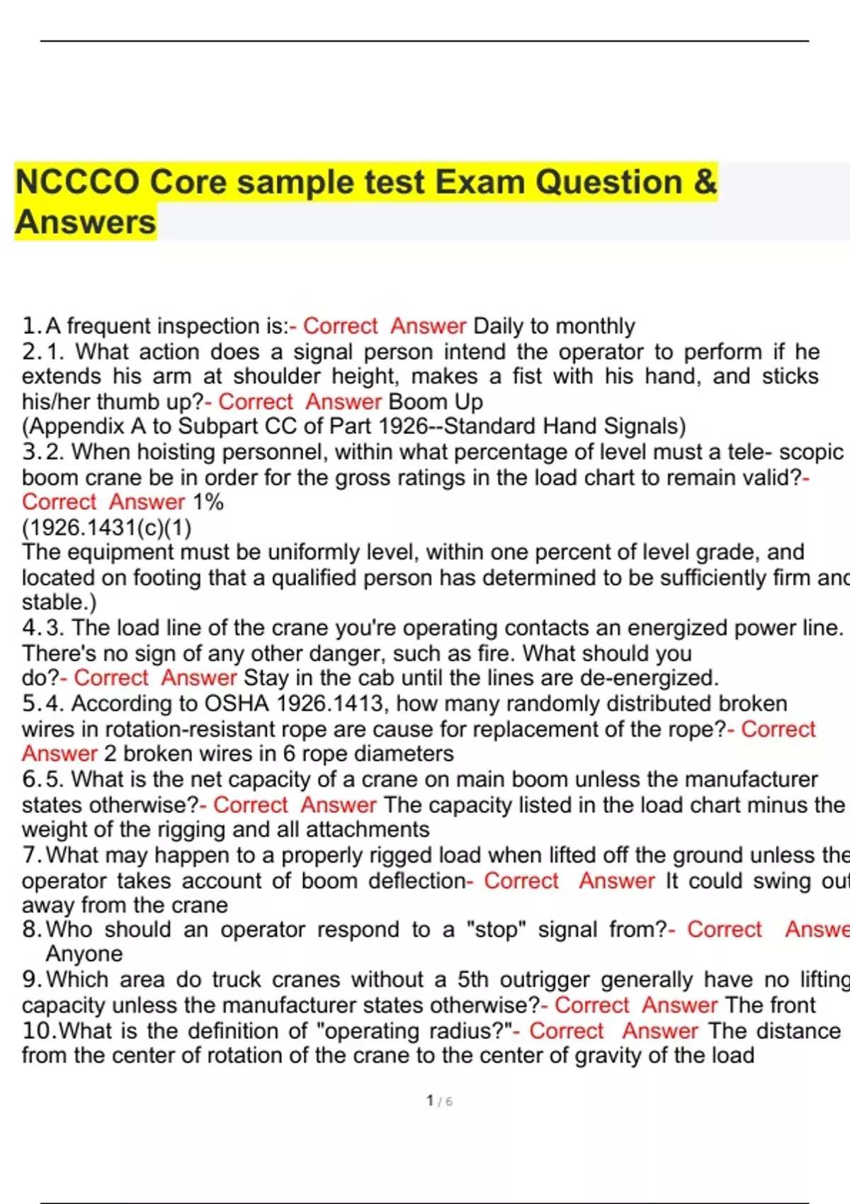 NCCCO Core sample test Exam Question & Answers.