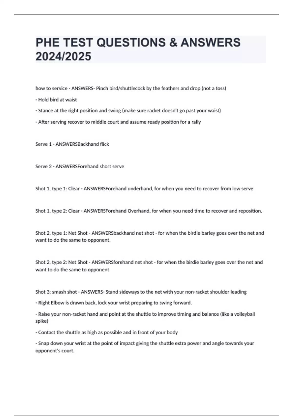 PHE TEST QUESTIONS & ANSWERS 2024/2025