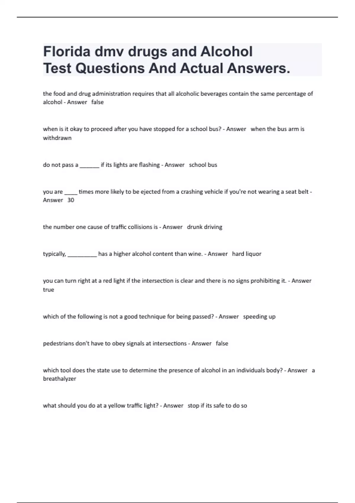 Florida dmv drugs and Alcohol Test Questions And Actual Answers.