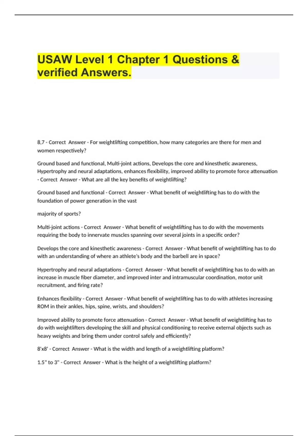 USAW Level 1 Chapter 1 Questions & verified Answers..