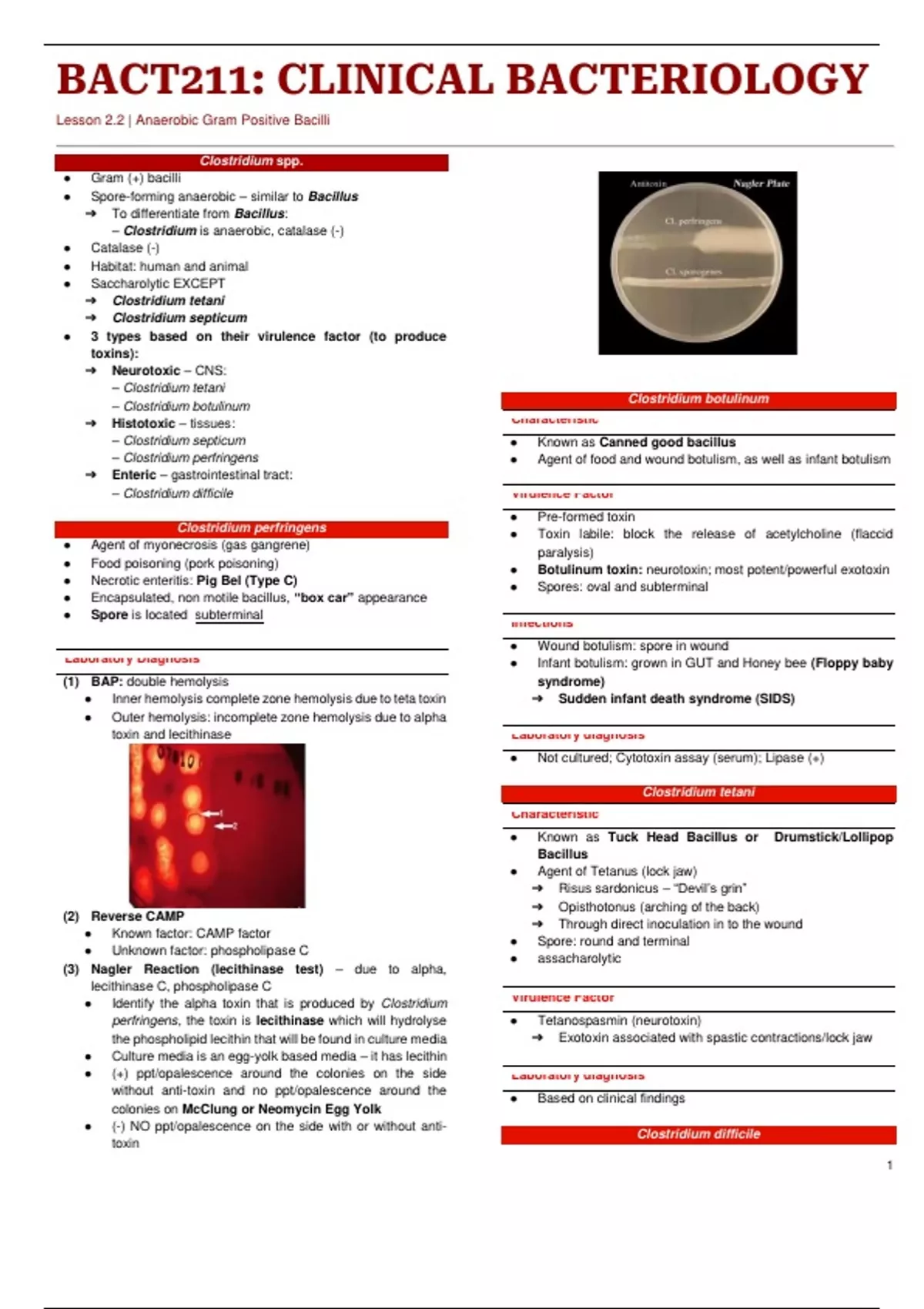 Summary Clinical Microbiology Anaerobic gram positive bacilli