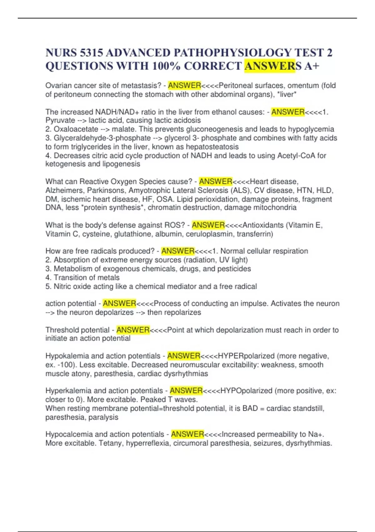 NURS 5315 ADVANCED PATHOPHYSIOLOGY TEST 2 QUESTIONS WITH 100% CORRECT ANSWERS A+