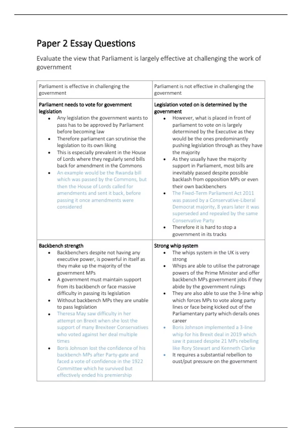 • Without backbench MPs they are unable which forces MPs to vote along party