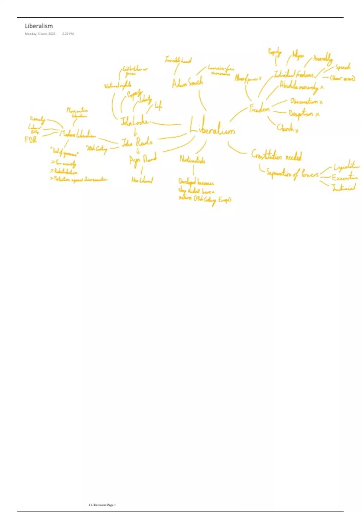 A basic mindmap on liberalism as an ideology. Contains some notes on thinkers and the beliefs of liberalism. Not a detailed mindmap, just providing basics.