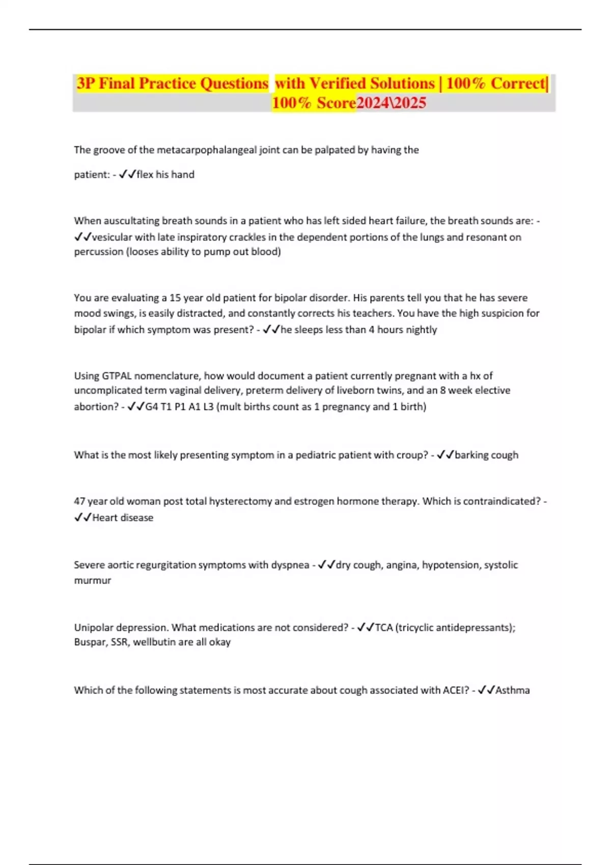 3p final practice questions with verified solutions and answers 2024 to 2025