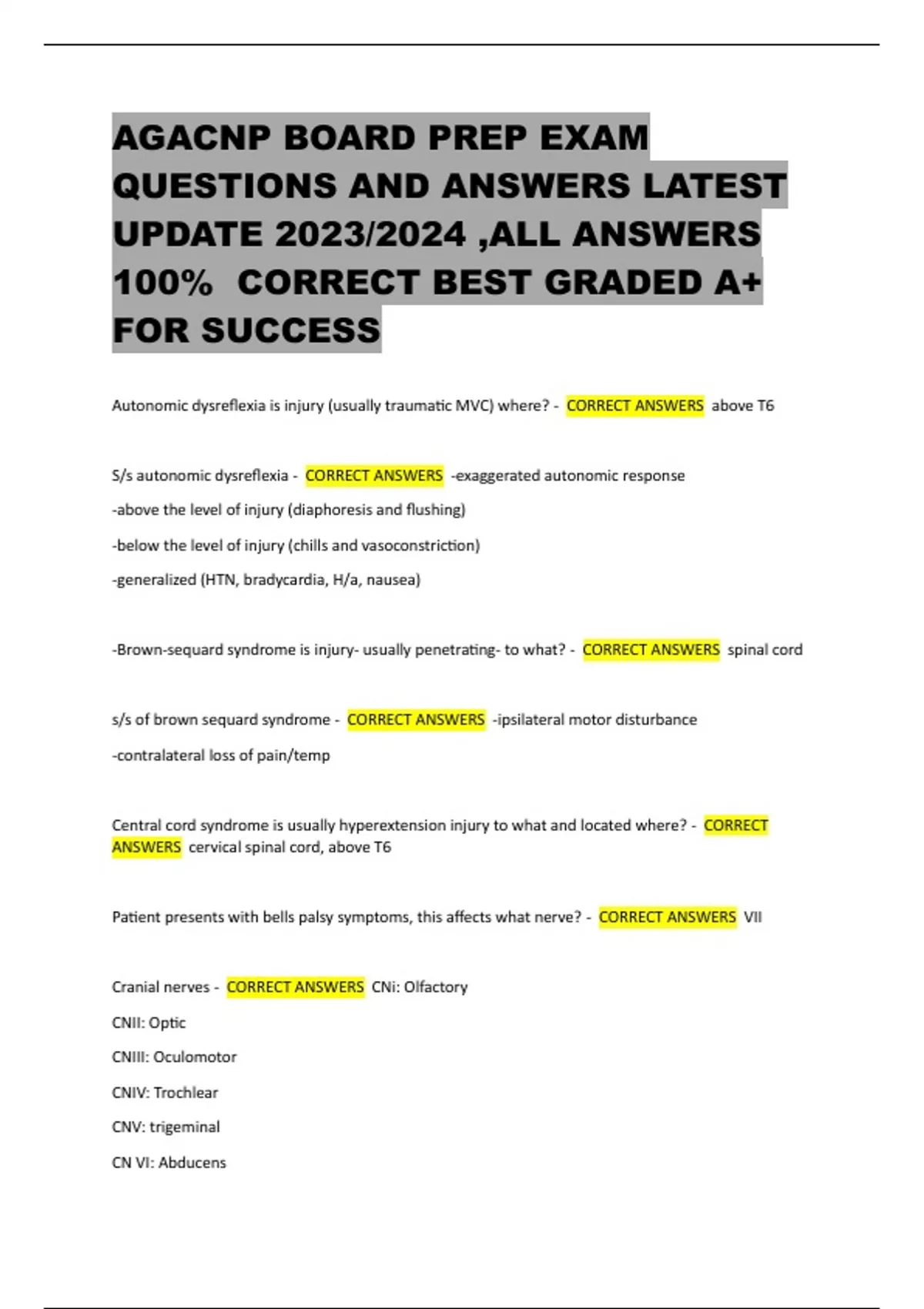 AGACNP BOARD PREP EXAM QUESTIONS AND ANSWERS LATEST UPDATE 2023/2024 ,ALL ANSWERS 100% CORRECT BEST GRADED A+ FOR SUCCESS