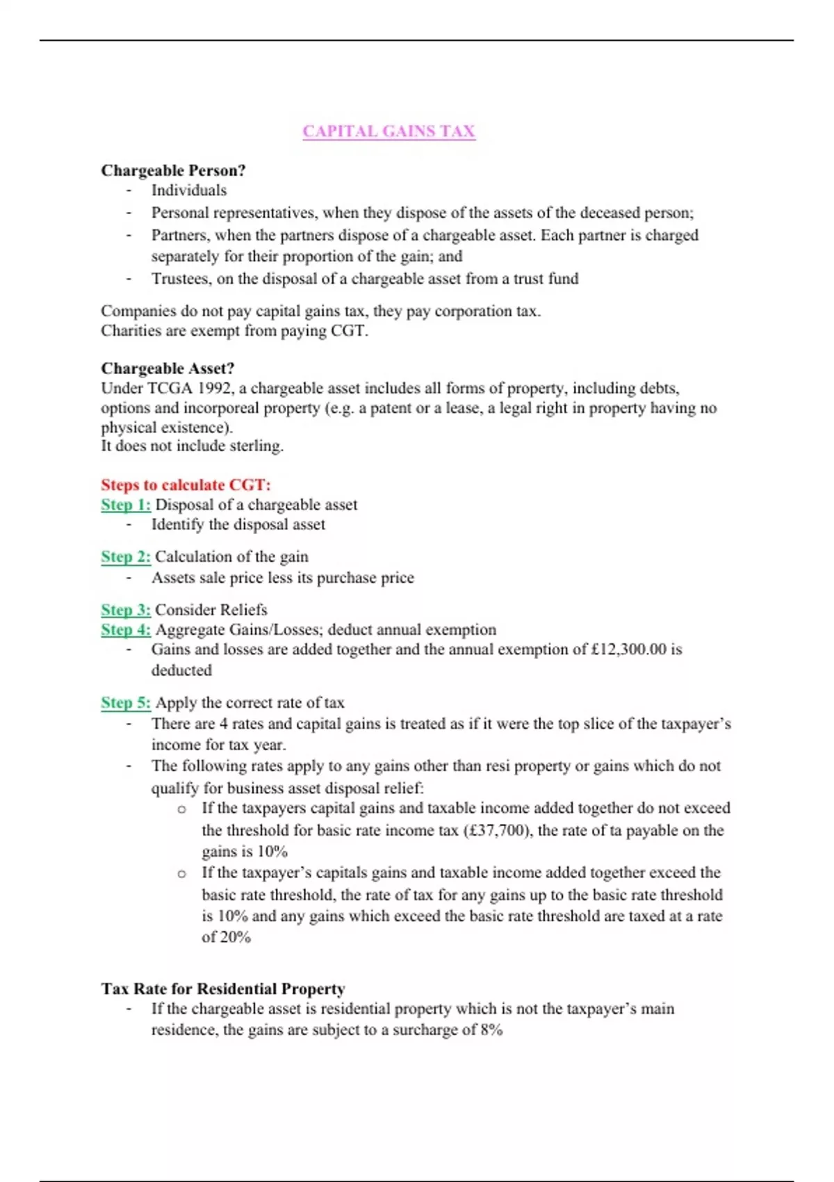 - Gains made by trustees and PRs are all taxed at 20% or for residential property, 28%