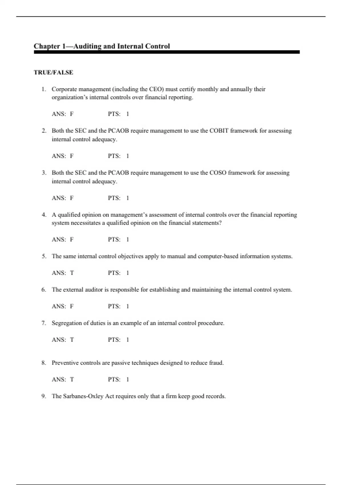 9. The Sarbanes-Oxley Act requires only that a firm keep good records.