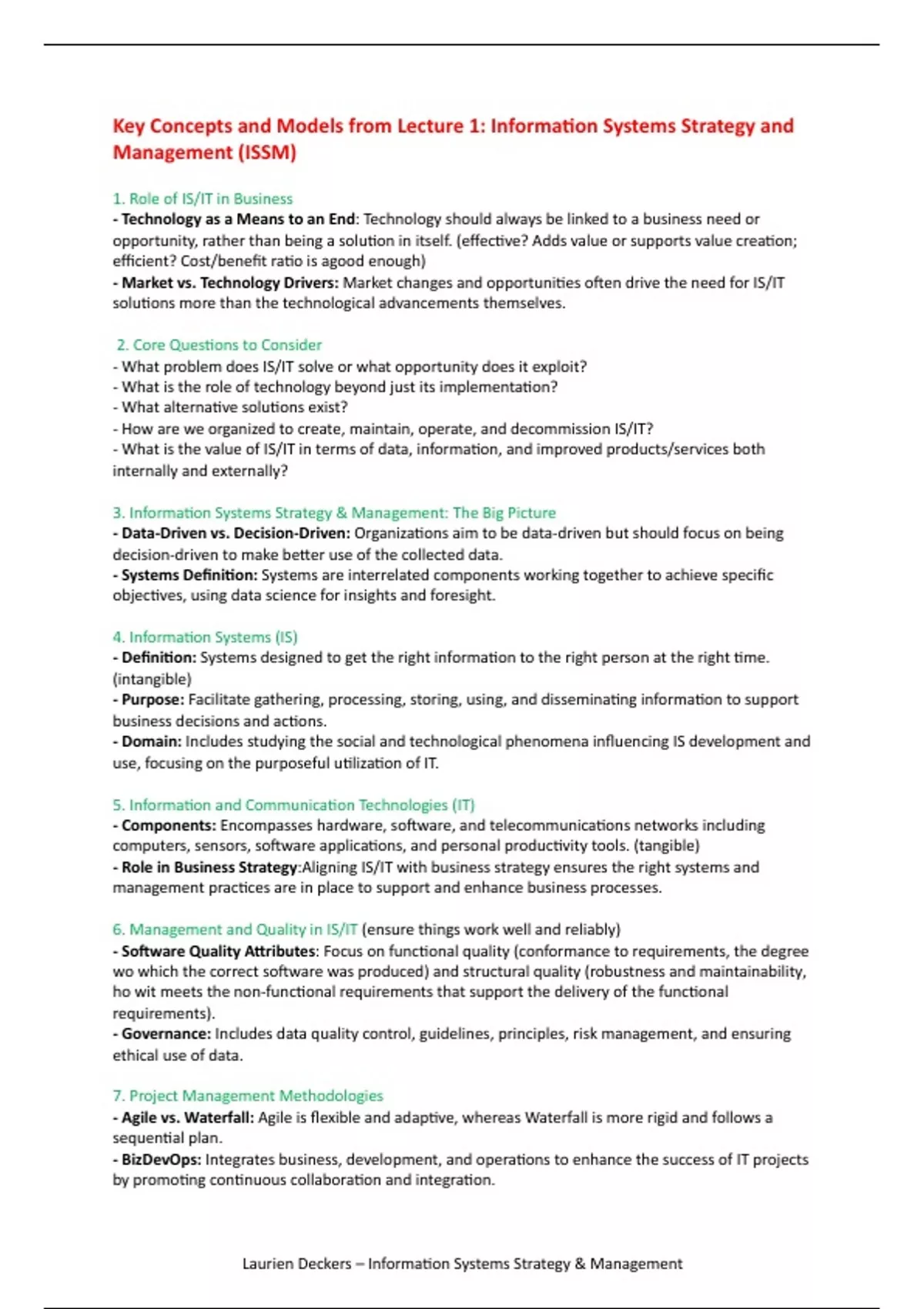 Samenvatting - Information Systems Strategy & Management