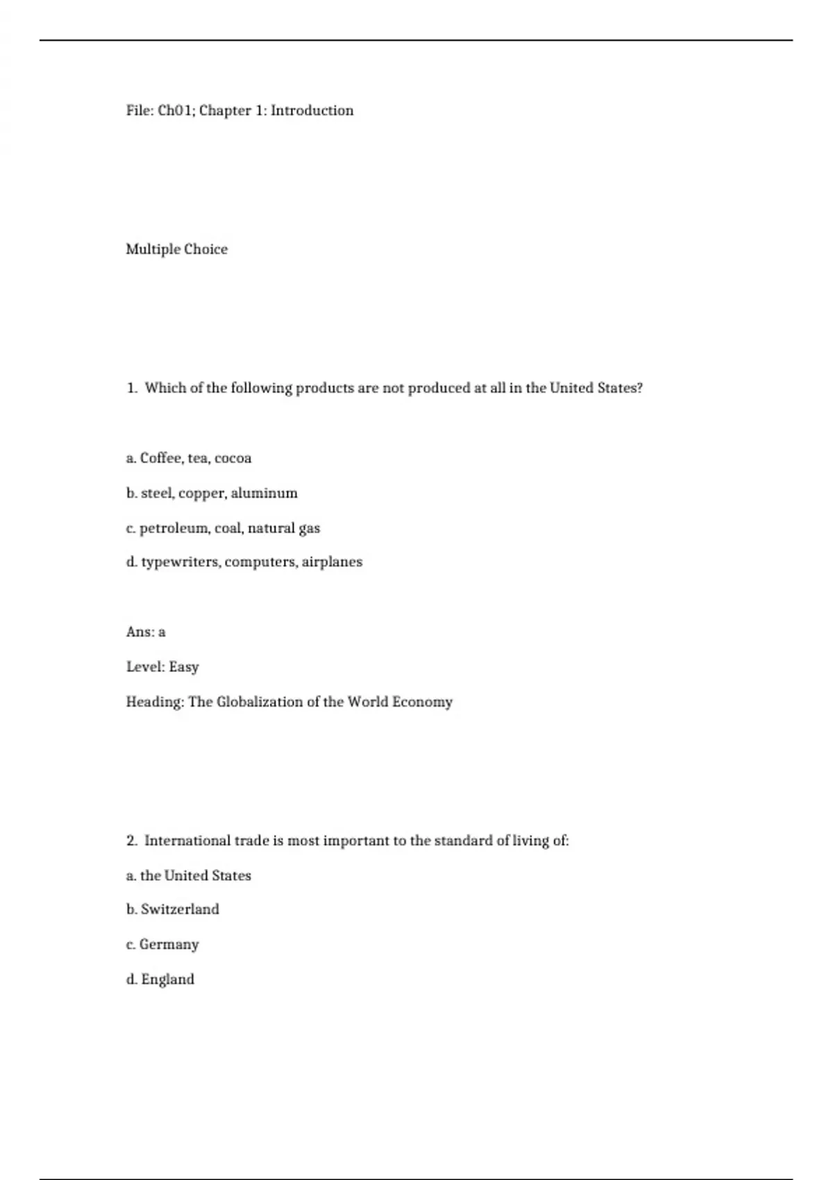 2. International trade is most important to the standard of living of: