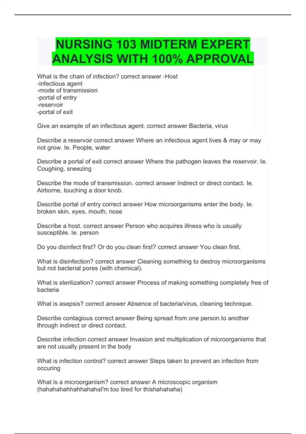 Nursing 103 Midterm EXPERT ANALYSIS WITH 100% approval