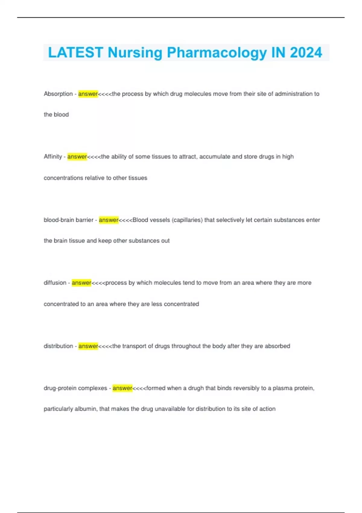 LATEST Nursing Pharmacology IN 2024