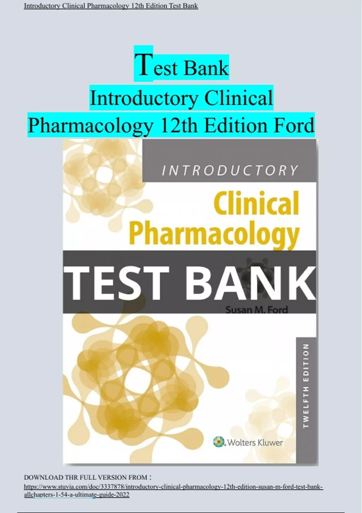 Test Bank Introductory Clinical Pharmacology 12th Edition Ford