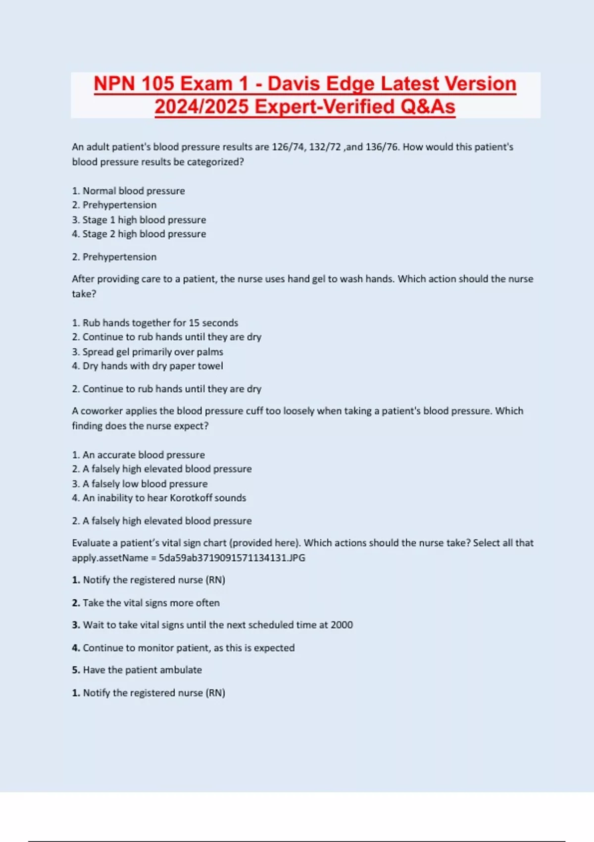 NPN 105 Exam 1 - Davis Edge Latest Version 2024/2025 Expert-Verified Q&As