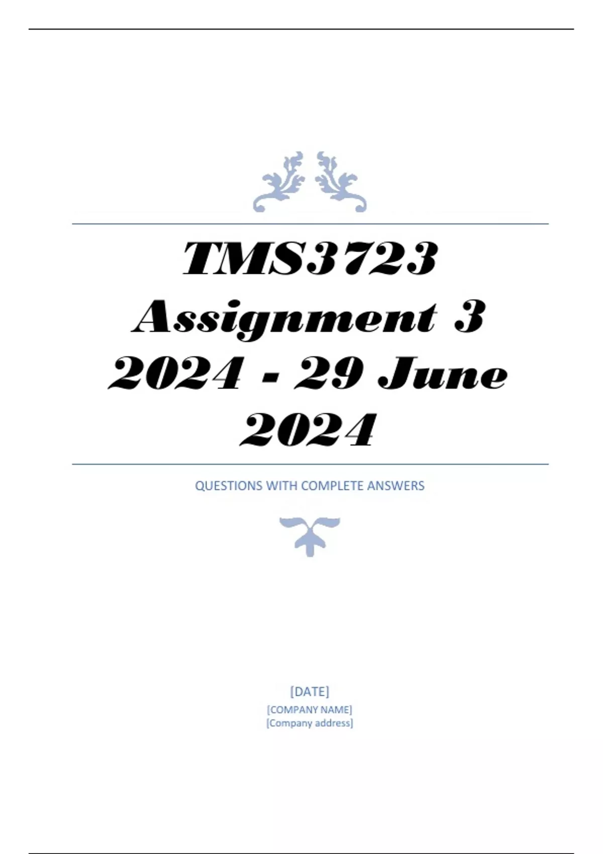 TMS3723 Assignment 3 2024 - 29 June 2024 QUESTIONS WITH DETAILED ANSWERS