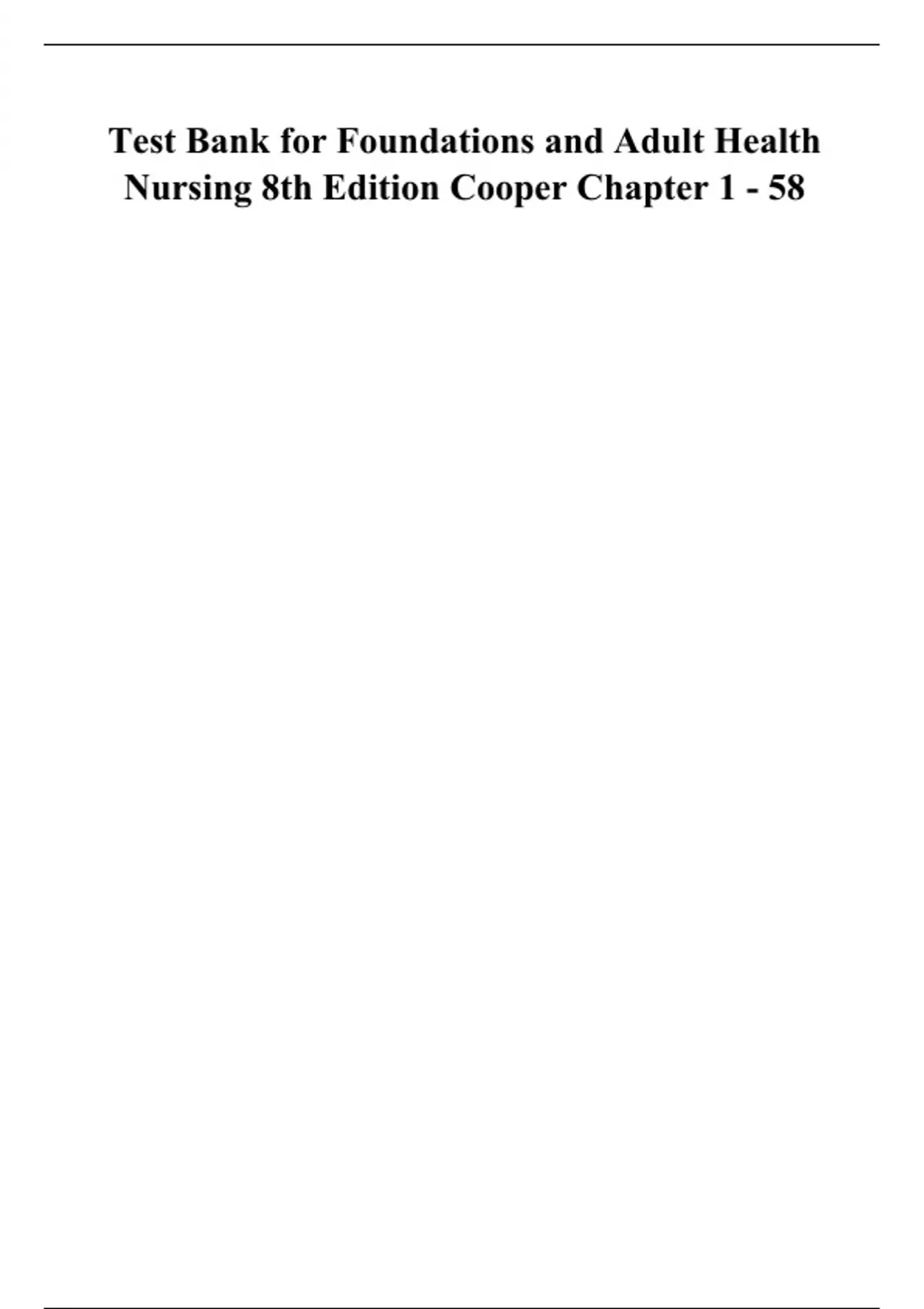 Test Bank for Foundations and Adult Health Nursing, 8th Edition Cooper, Complete Chapters 1 - 58 (100% Verified by Experts)