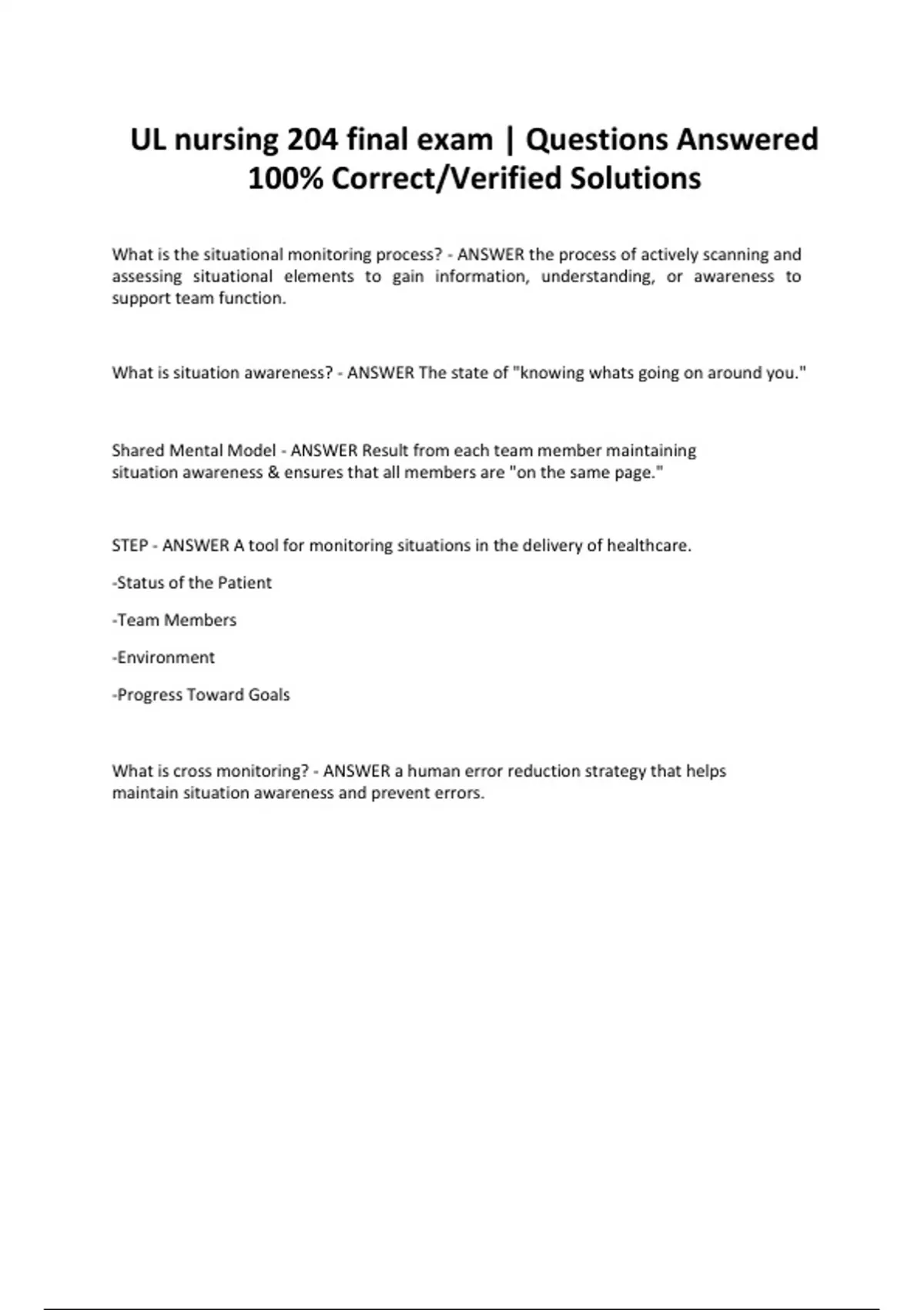 UL nursing 204 final exam | Questions Answered 100% Correct/Verified Solutions
