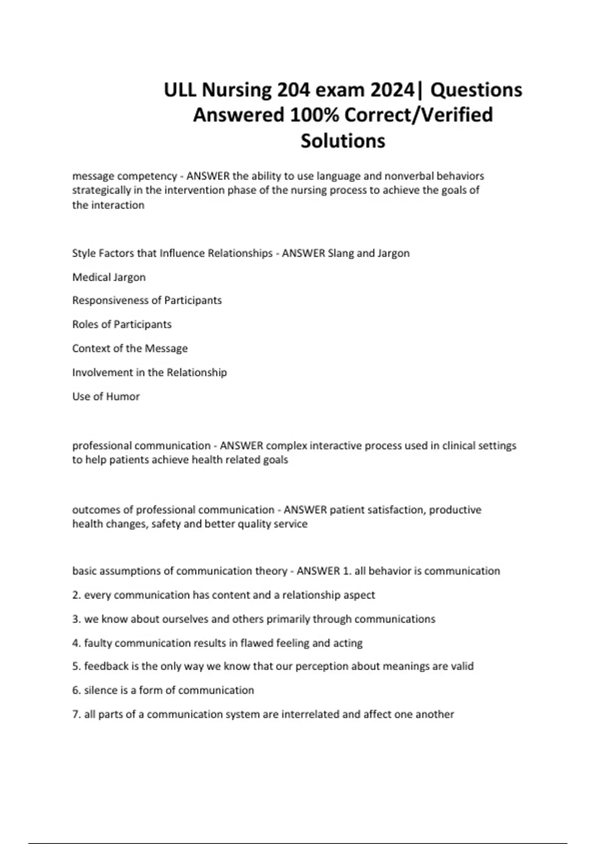 ULL Nursing 204 exam 2024| Questions Answered 100% Correct/Verified Solutions