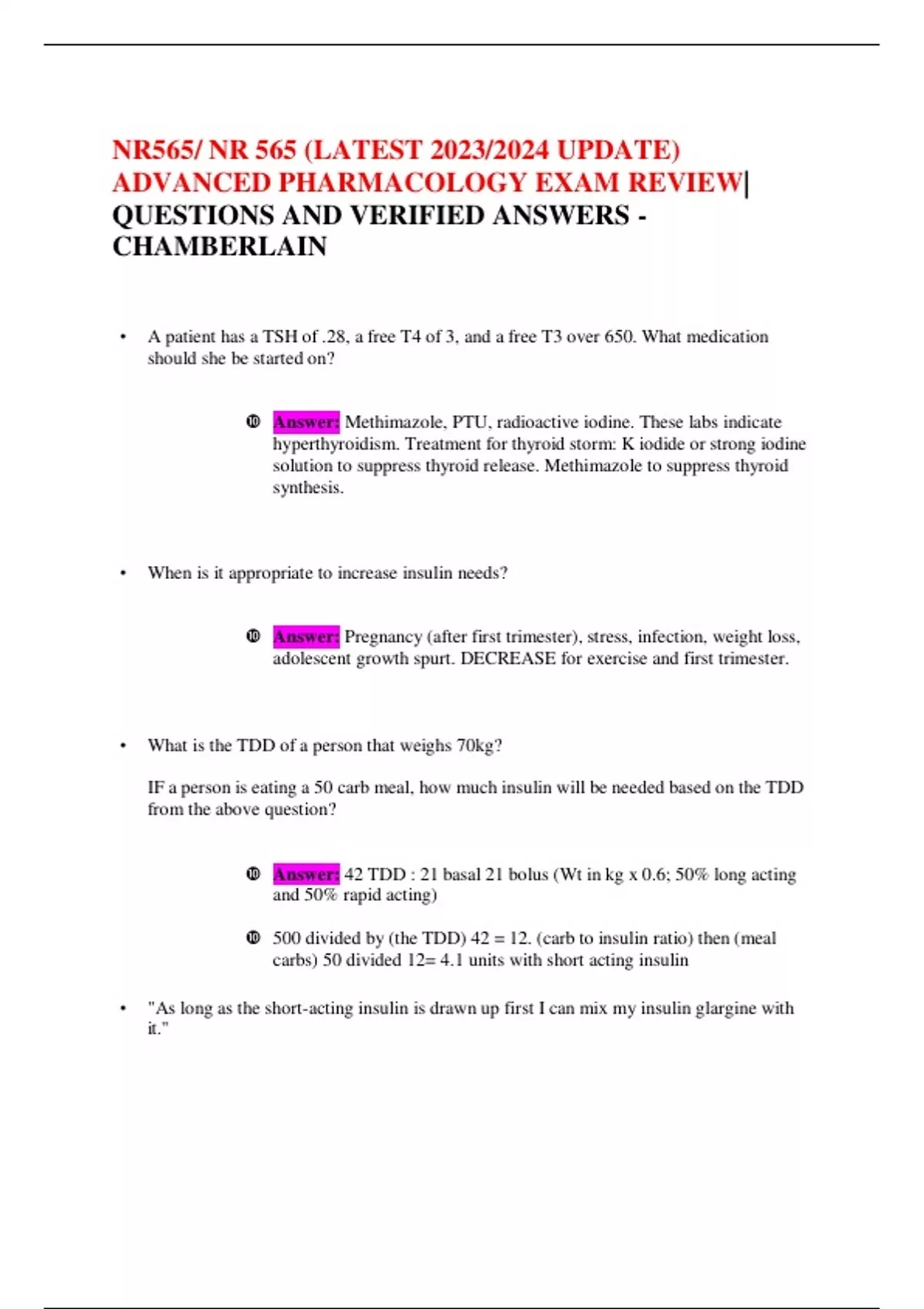 NR565 NR 565 (LATEST 2023/2024 UPDATE) ADVANCED PHARMACOLOGY EXAM REVIEW QUESTIONS AND VERIFIED ANSWERS -CHAMBERLAIN