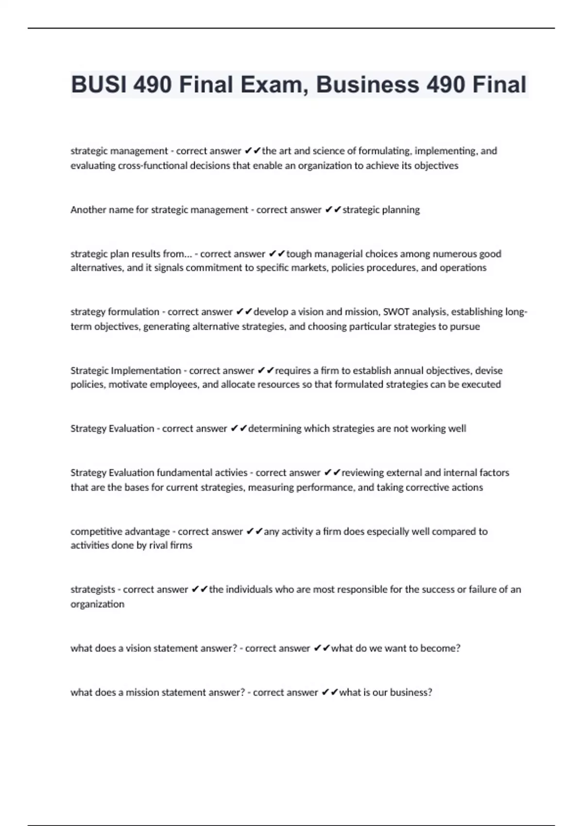 BUSI 490 Final Exam, Business 490 Final