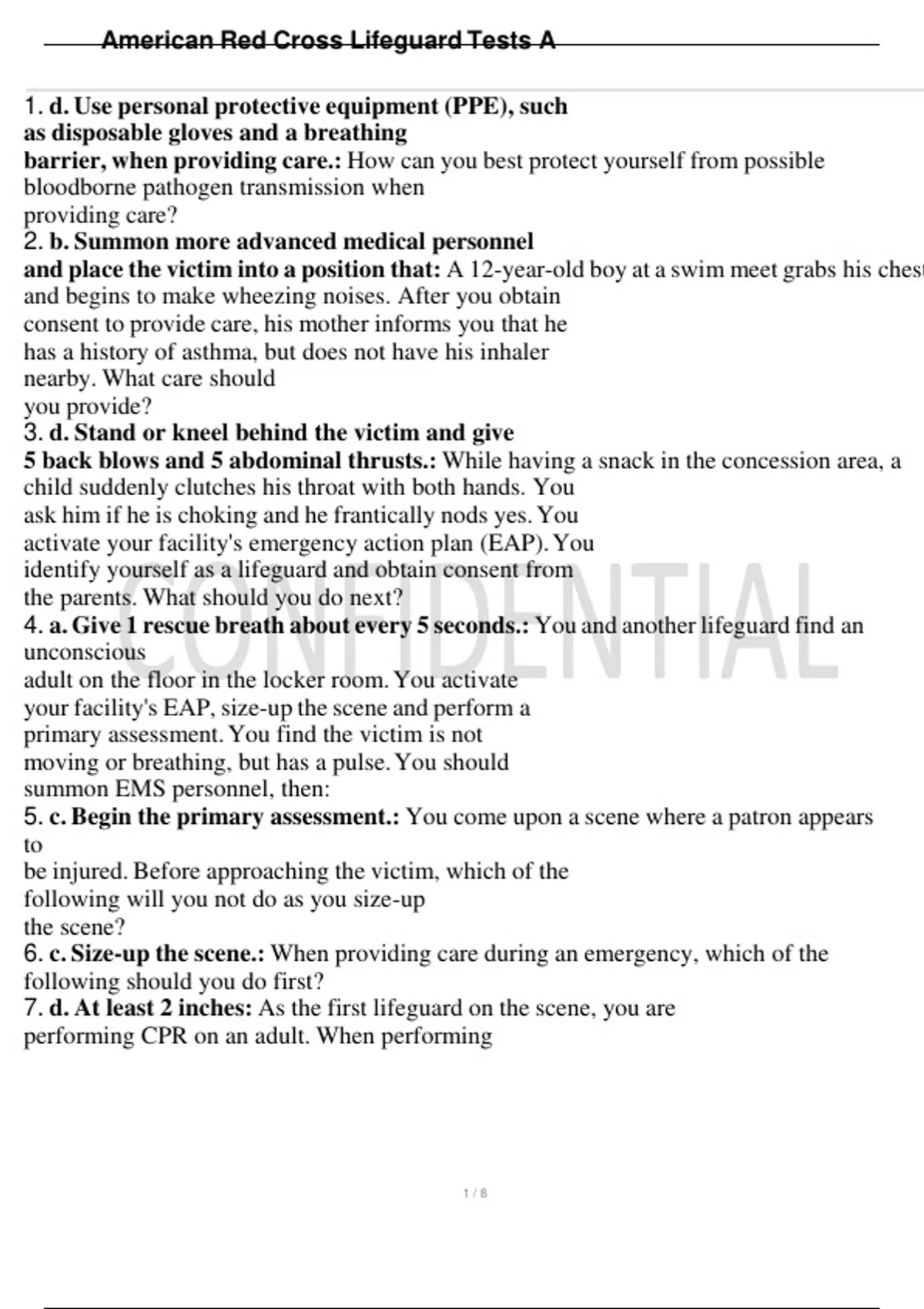 7. d. At least 2 inches: As the first lifeguard on the scene, you are