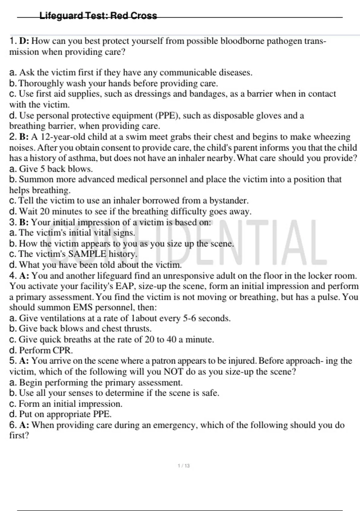 4. A: You and another lifeguard find an unresponsive adult on the floor in the locker room.
