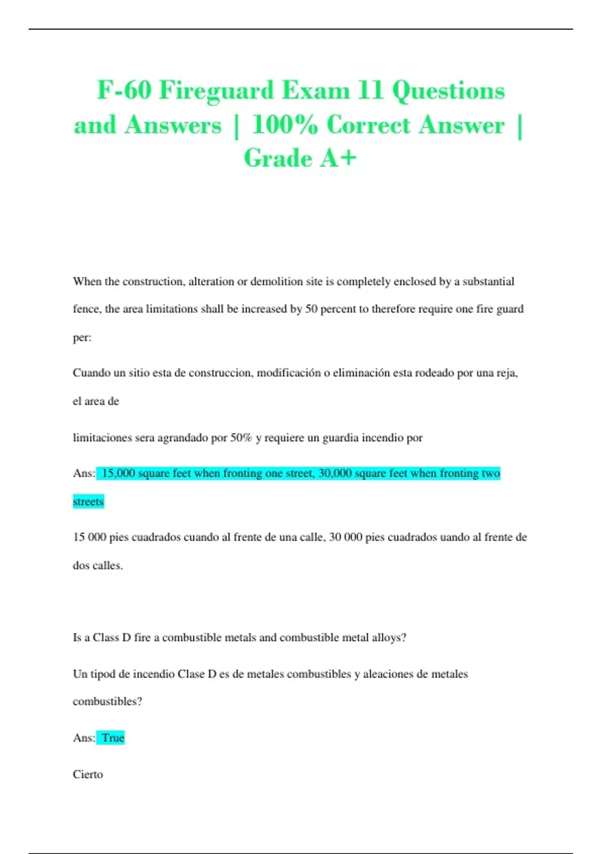 F-60 Fireguard Exam 11 Questions and Answers | 100% Correct Answer | Grade A+