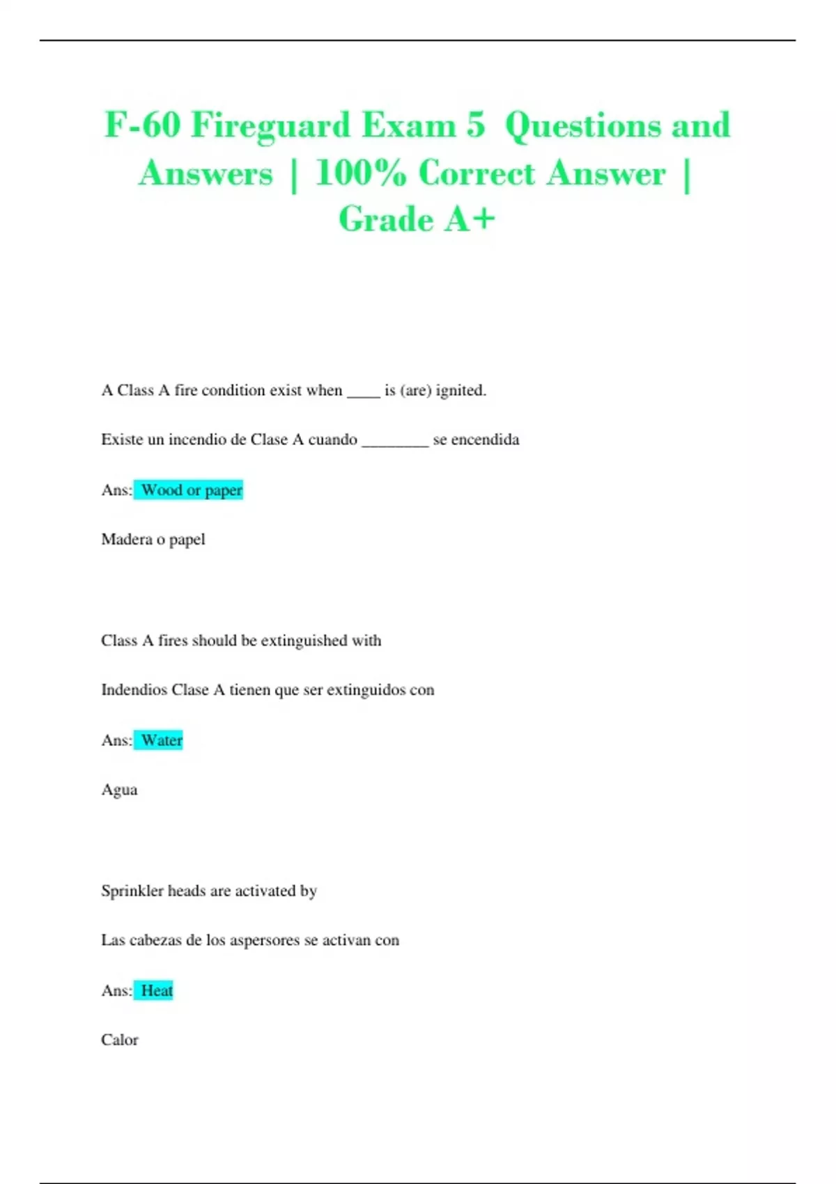 F-60 Fireguard Exam 5 Questions and Answers | 100% Correct Answer | Grade A+