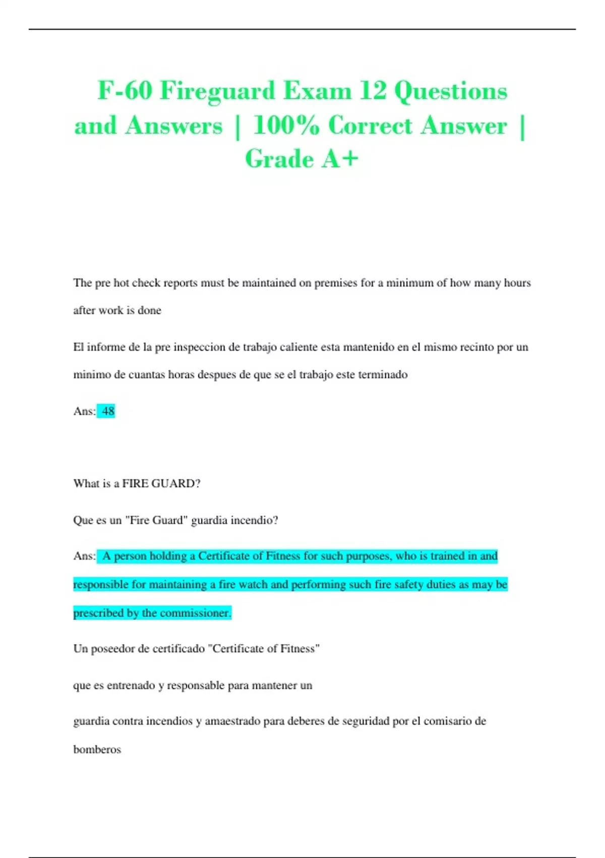 F-60 Fireguard Exam 12 Questions and Answers | 100% Correct Answer | Grade A+