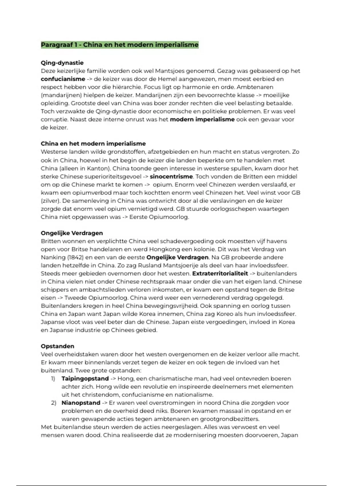 1) Taipingopstand -> Hong, een charismatische man, had veel ontevreden boeren