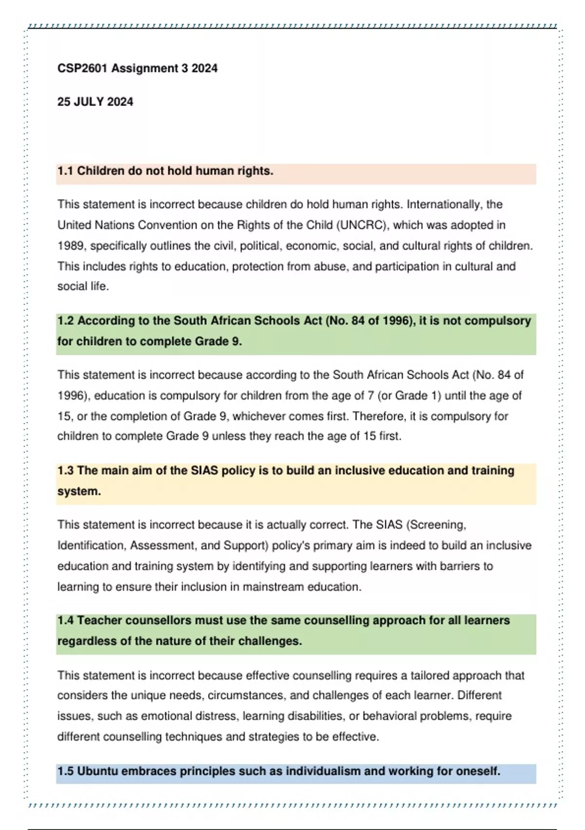 1.2 According to the South African Schools Act (No. 84 of 1996), it is not compulsory
