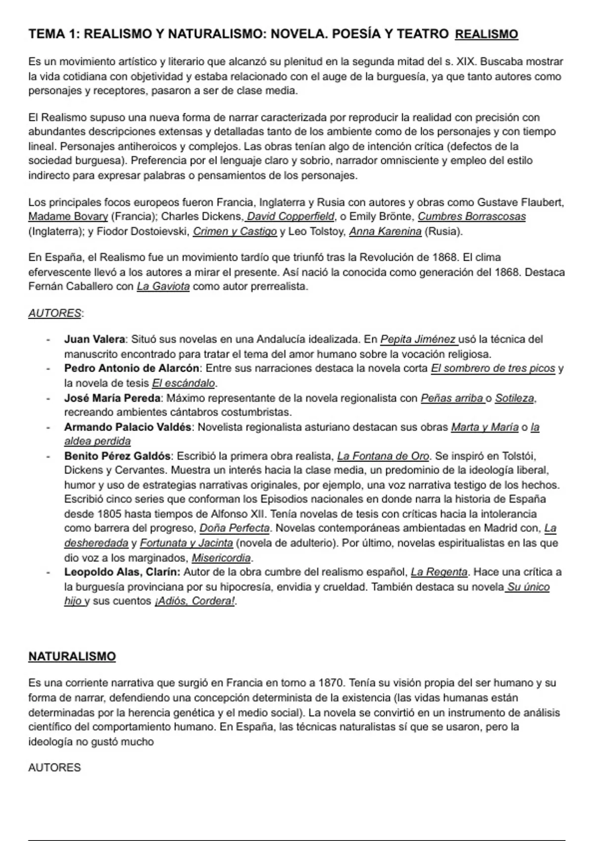 Resúmenes literatura 2 Bachillerato