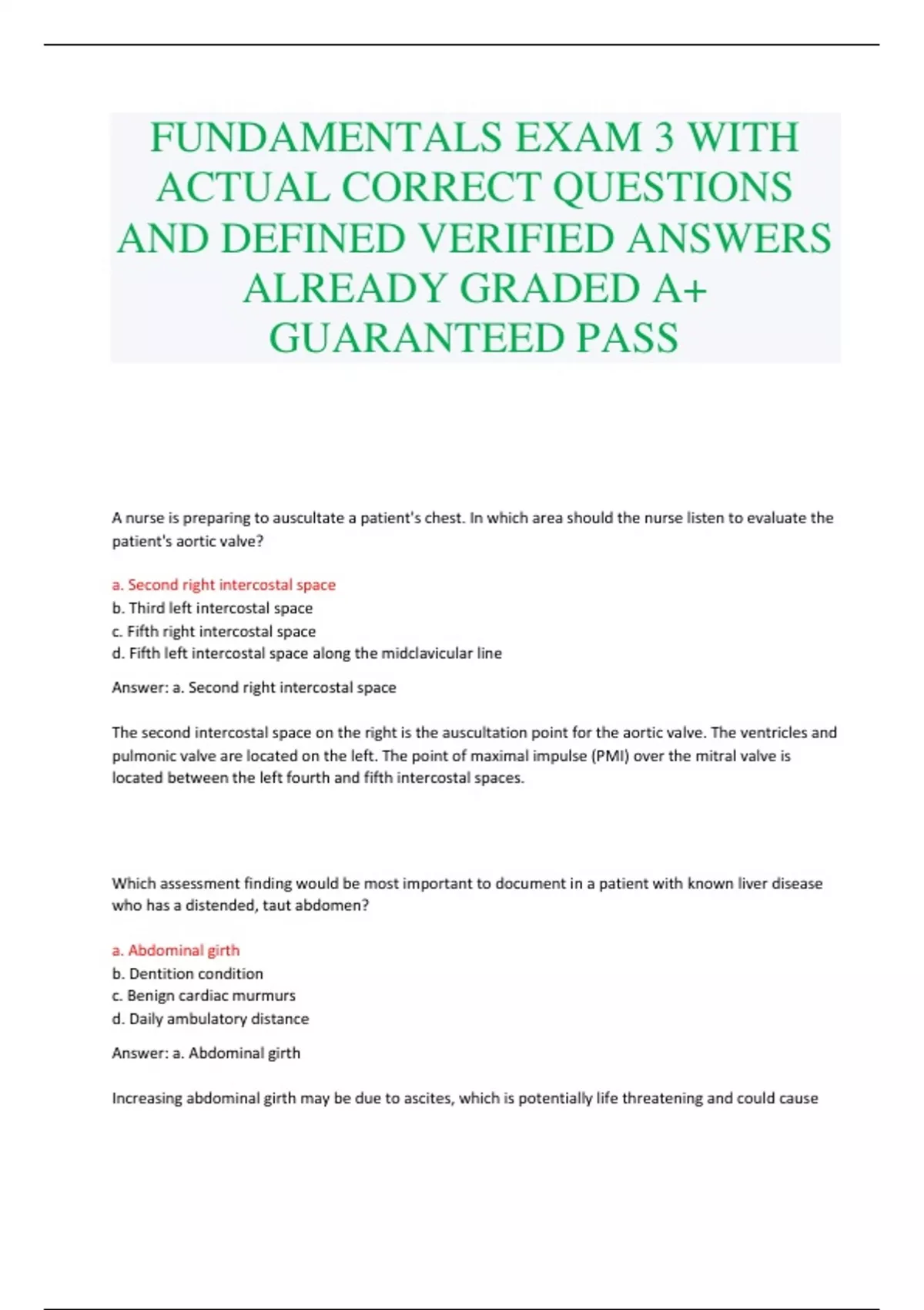 FUNDAMENTALS EXAM 3 WITH ACTUAL CORRECT QUESTIONS AND DEFINED VERIFIED ANSWERS ALREADY GRADED A+ GUARANTEED PASS