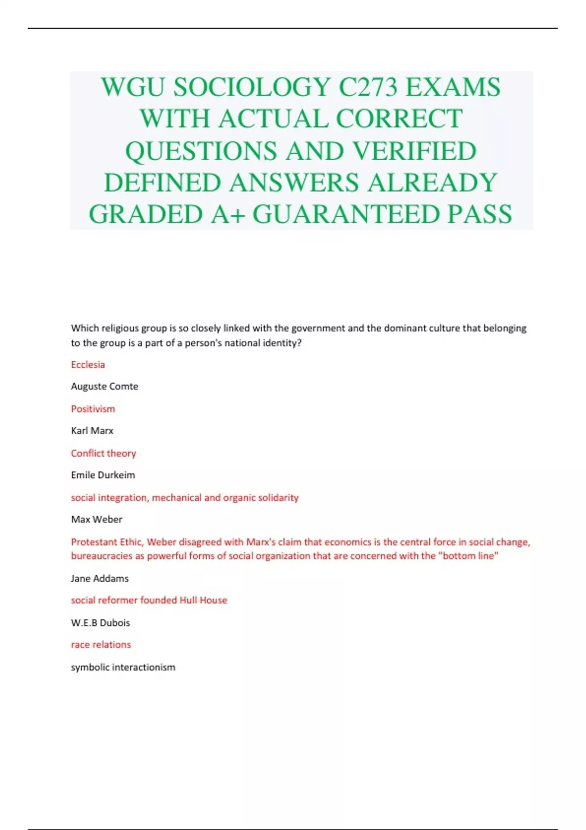 WGU SOCIOLOGY C273 EXAMS WITH ACTUAL CORRECT QUESTIONS AND VERIFIED DEFINED ANSWERS ALREADY GRADED A+ GUARANTEED PASS