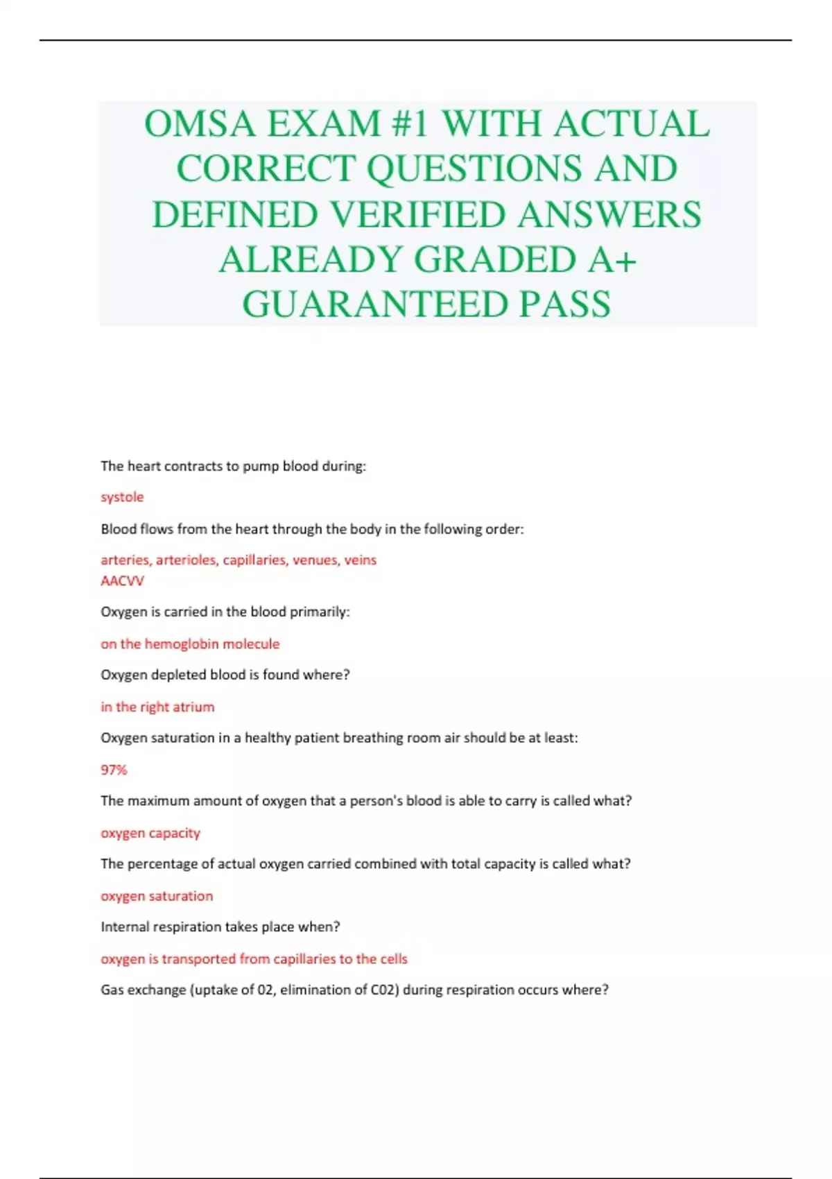 OMSA EXAM #1 WITH ACTUAL CORRECT QUESTIONS AND DEFINED VERIFIED ANSWERS ALREADY GRADED A+ GUARANTEED PASS