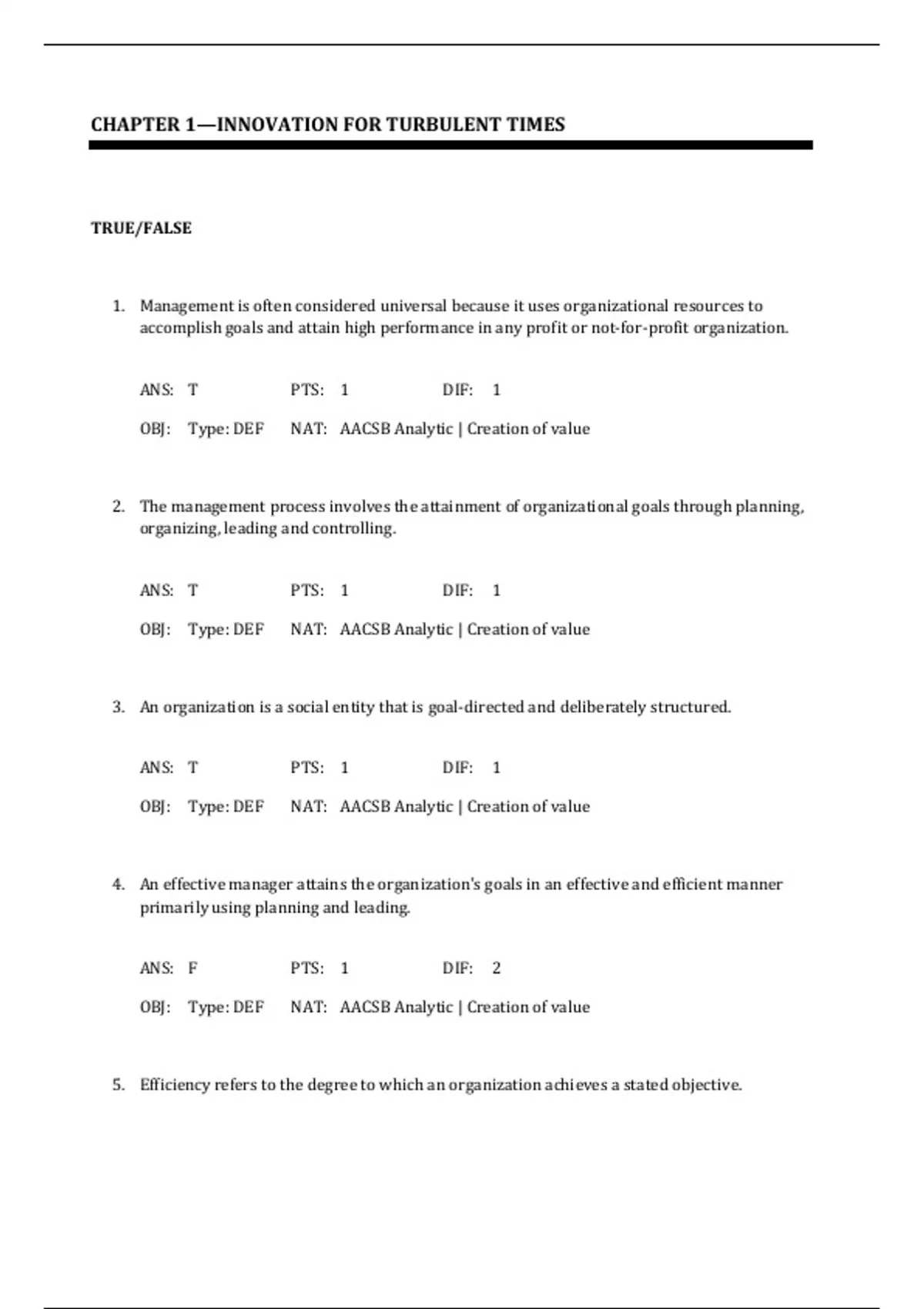 OBJ: Type: DEF NAT: AACSB Analytic | Creation of value