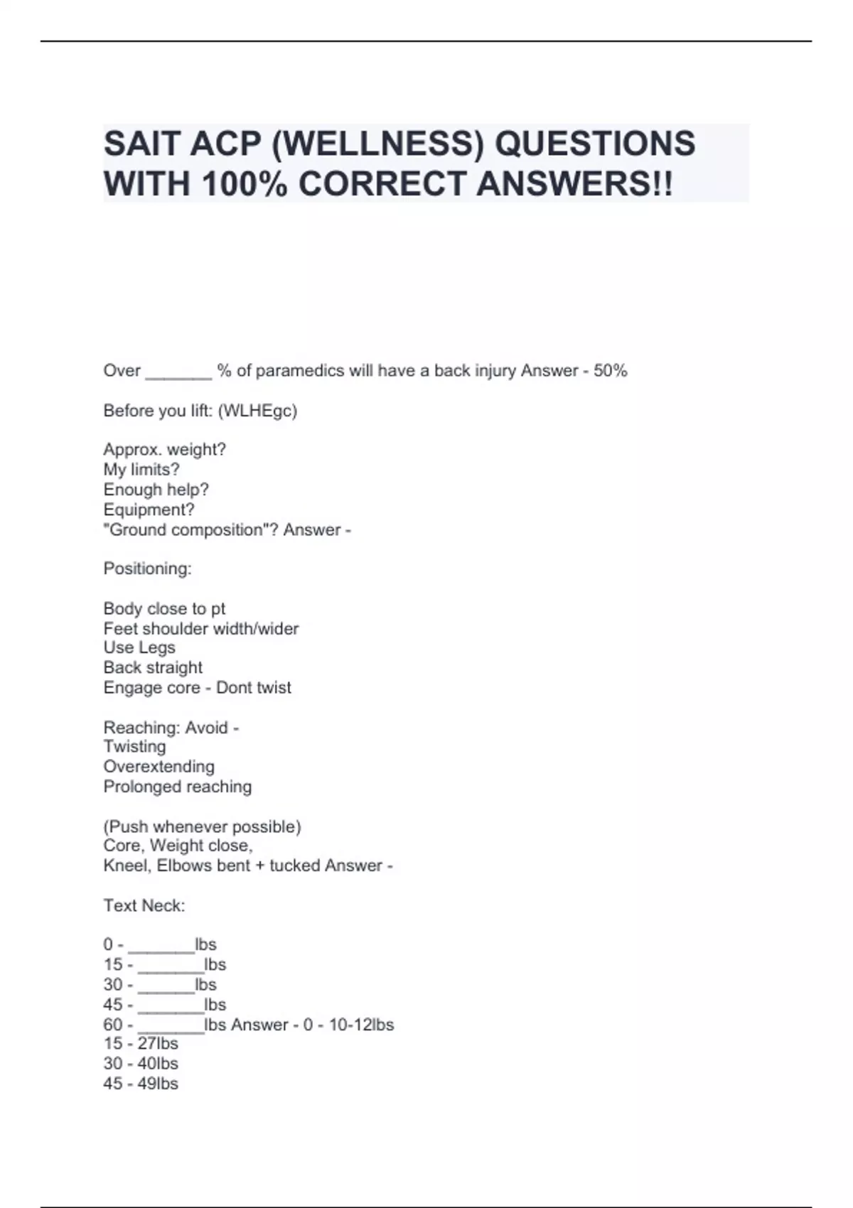 SAIT ACP (WELLNESS) QUESTIONS WITH 100% CORRECT ANSWERS!!