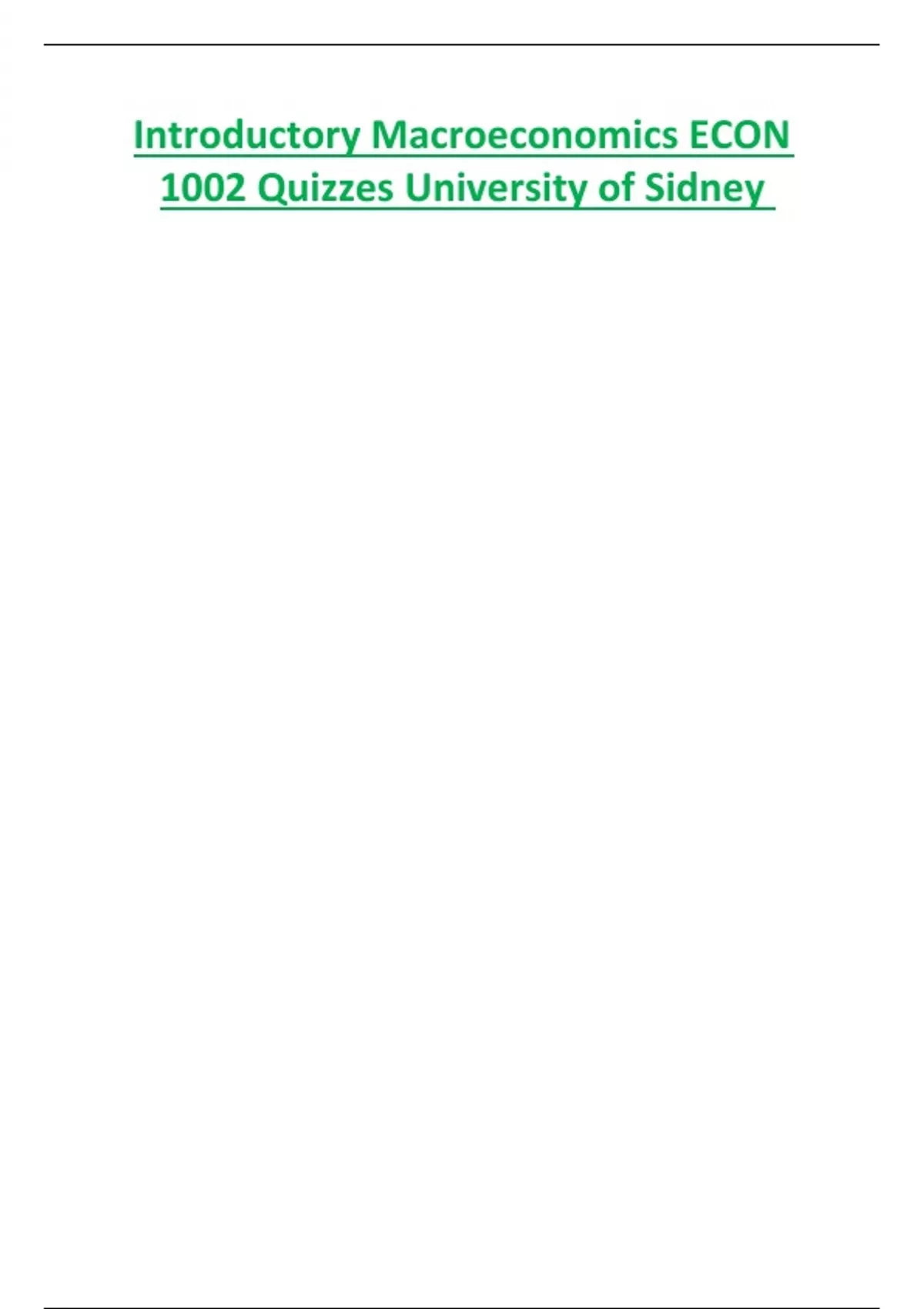 Introductory Macroeconomics ECON 1002 Quizzes University of Sidney
