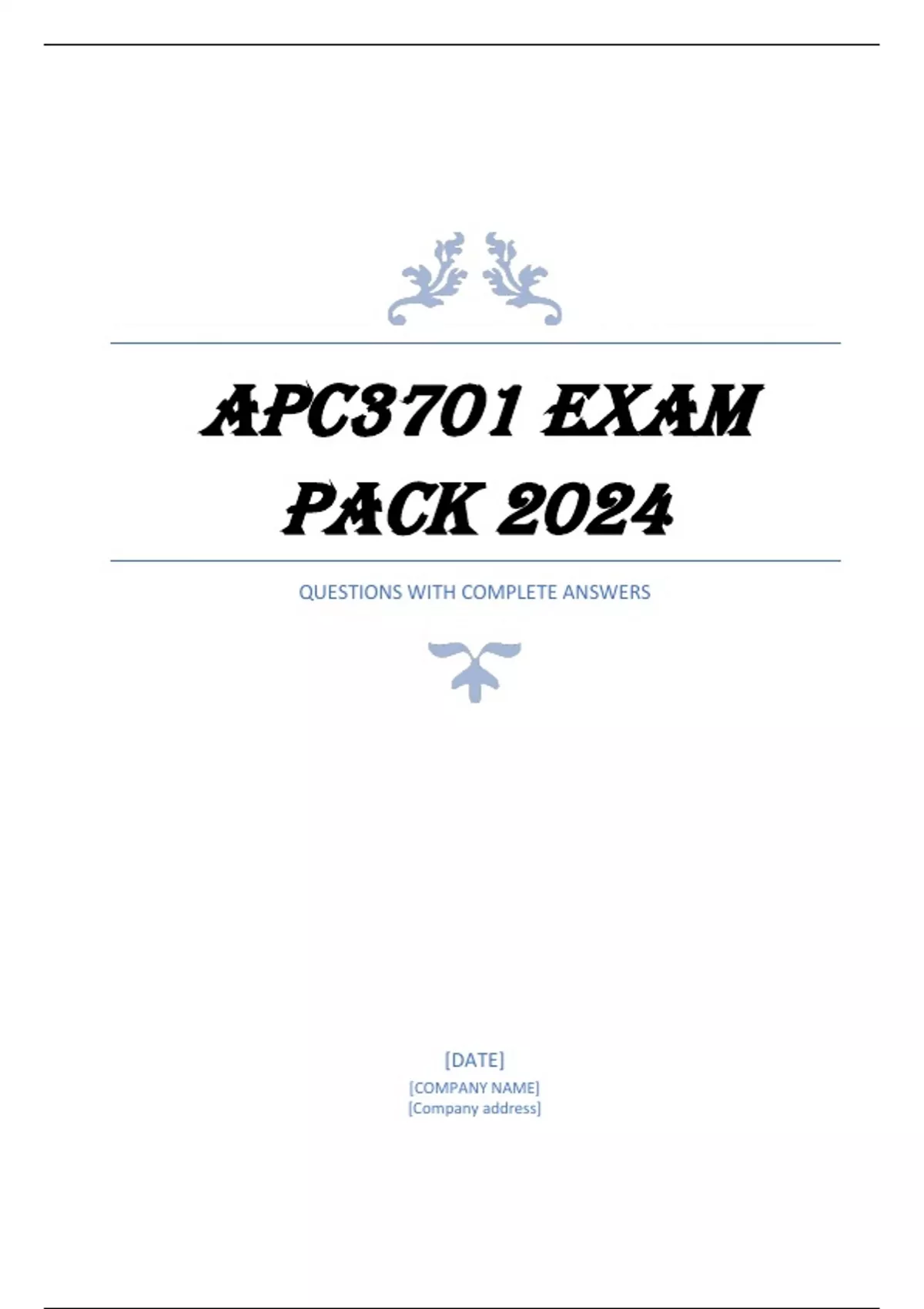 QUESTIONS AND ANSWERS APC3701 EXAM PACK 2024/2025