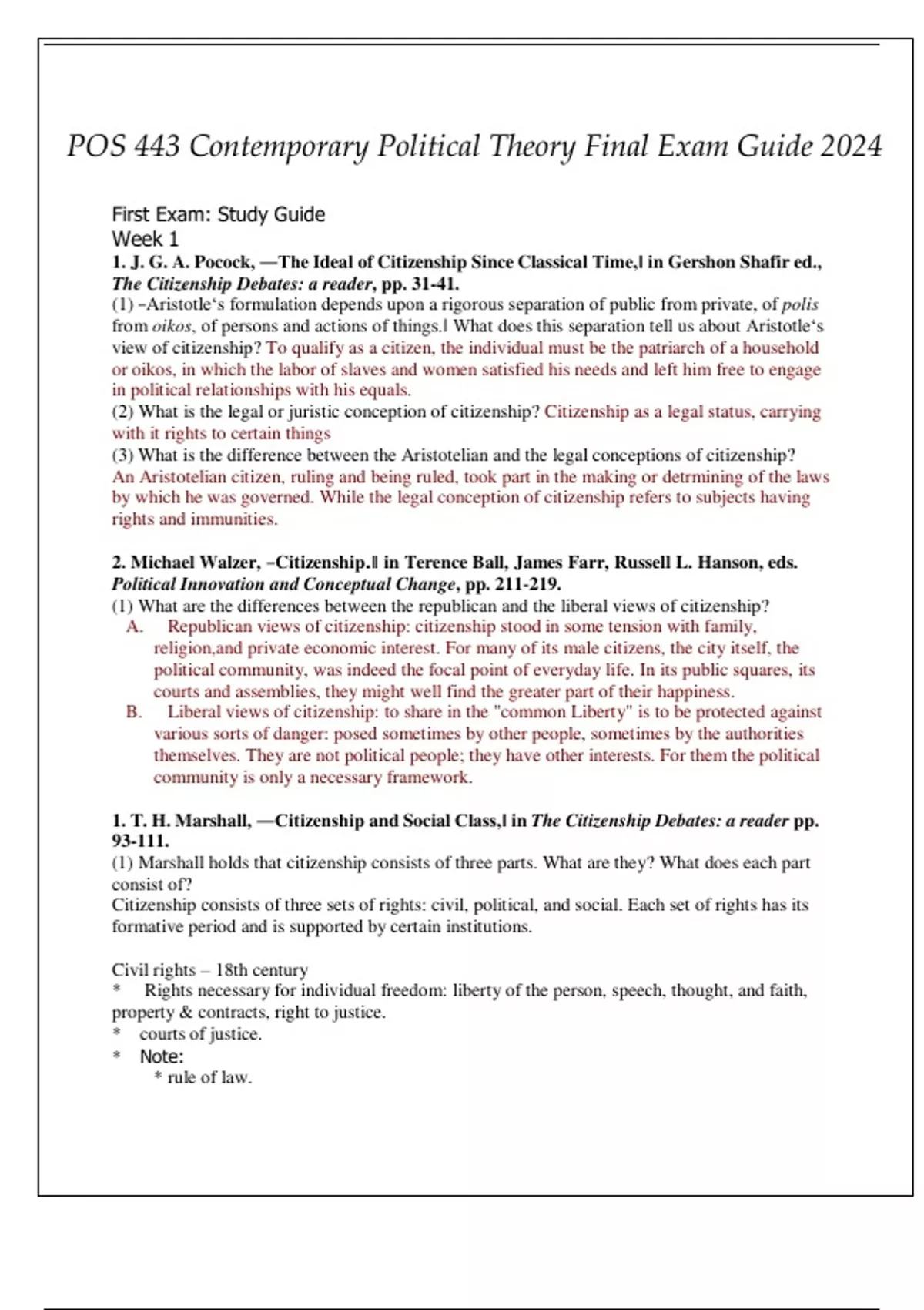 (ASU) POS 443 Co(ASU) POS 443 Contemporary Political Theory Final Exam Guide Q & S 2024(ASU) POS 443 Contemporary Political Theory Final Exam Guide Q & S 2024ntemporary Political Theory Final Exam Guide Q & S 2024