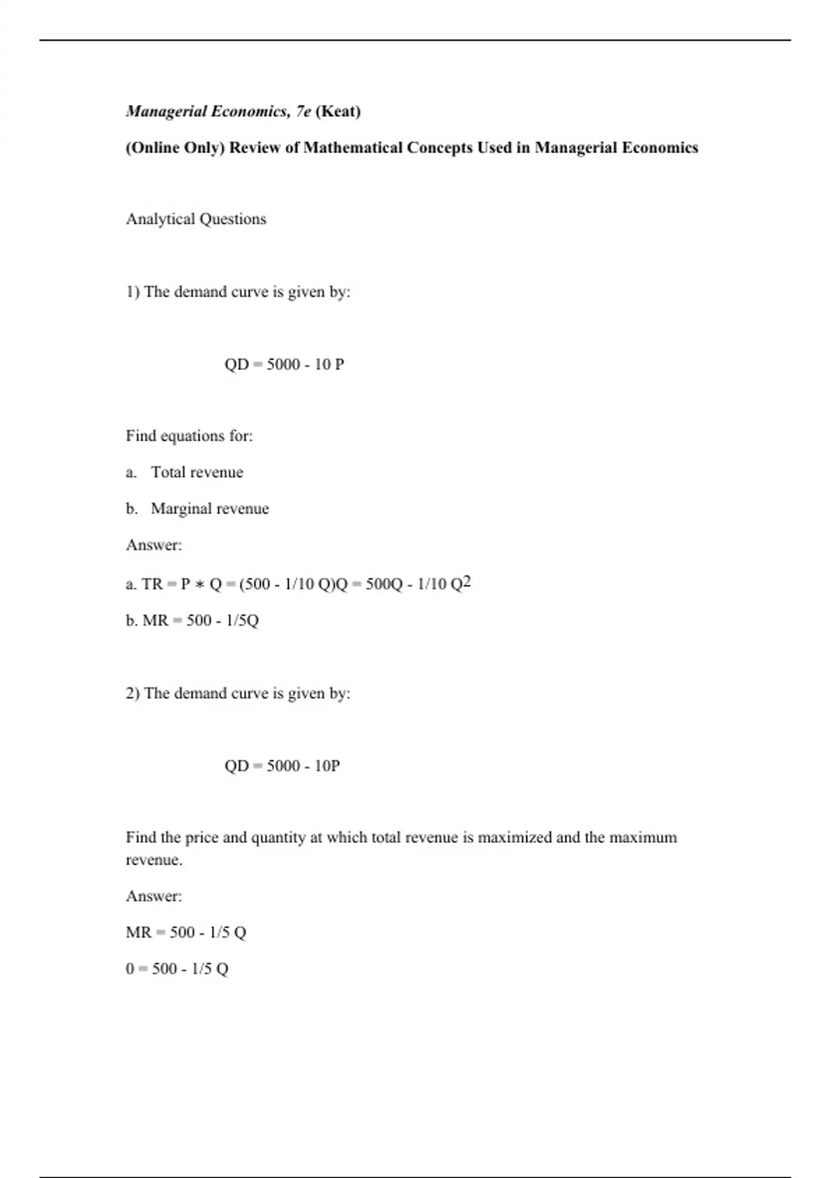 (Online Only) Review of Mathematical Concepts Used in Managerial Economics