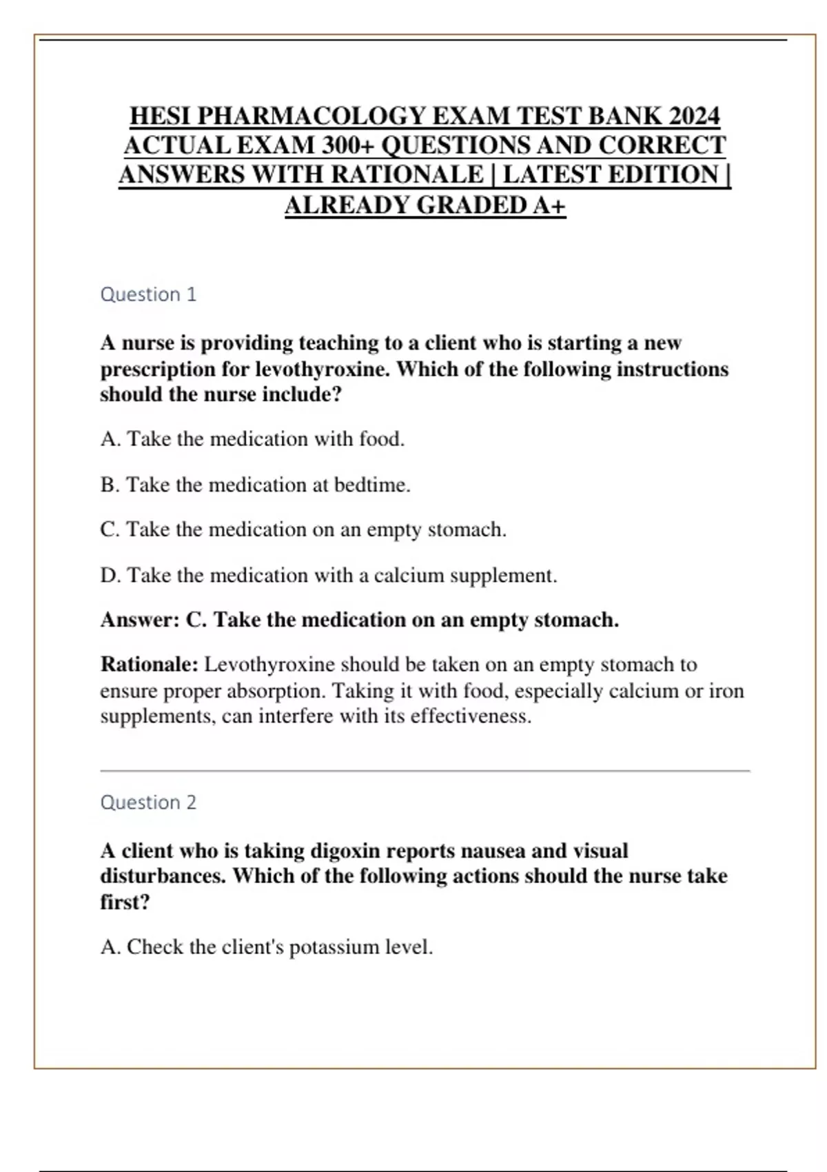 HESI PHARMACOLOGY EXAM TEST BANK 2024 ACTUAL EXAM 300+ QUESTIONS AND CORRECT ANSWERS WITH RATIONALE | LATEST EDITION | ALREADY GRADED A+