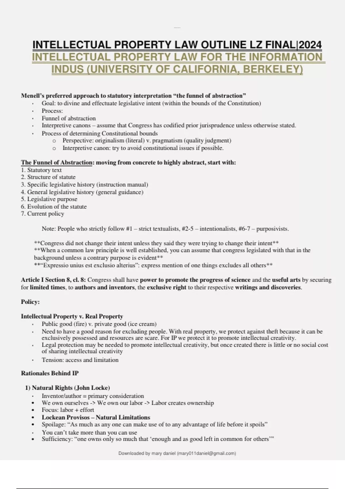 INTELLECTUAL PROPERTY LAW FOR THE INFORMATION INDUS (UNIVERSITY OF CALIFORNIA, BERKELEY)