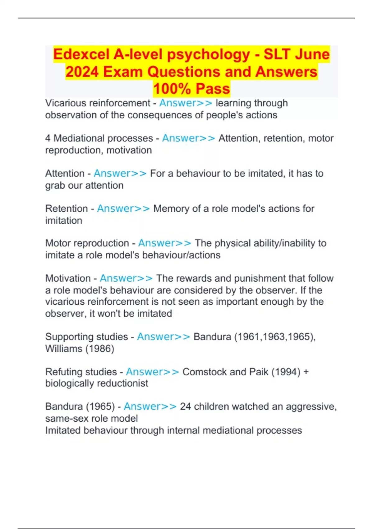 Edexcel A-level psychology - SLT June 2024 Exam Questions and Answers 100% Pass