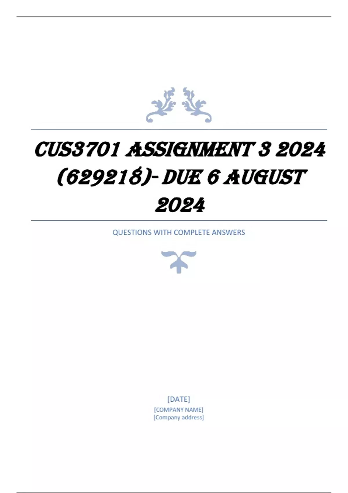 CUS3701 Assignment 3 2024 (629218)- DUE 6 August 2024 COMPLETE ANSWERS