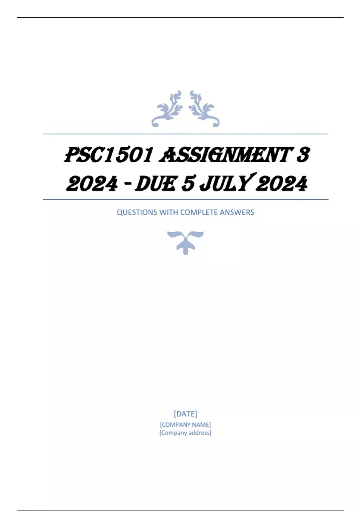 PSC1501 Assignment 3 2024 - DUE 5 July 2024 COMPLETE ANSWERS