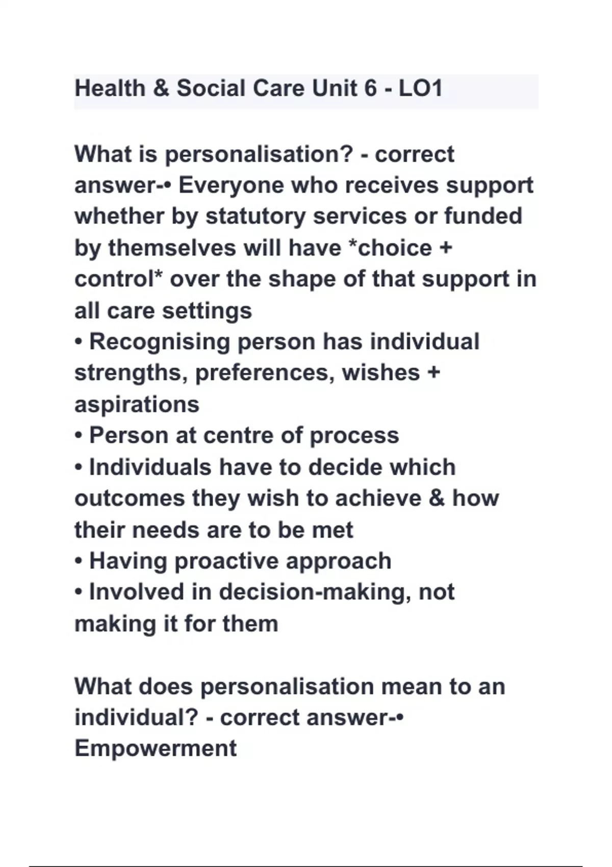 Health & Social Care Unit 6 - LO1 Questions with 100% Actual correct answers | verified | latest update | Graded A+ | Already Passed | Complete Solution