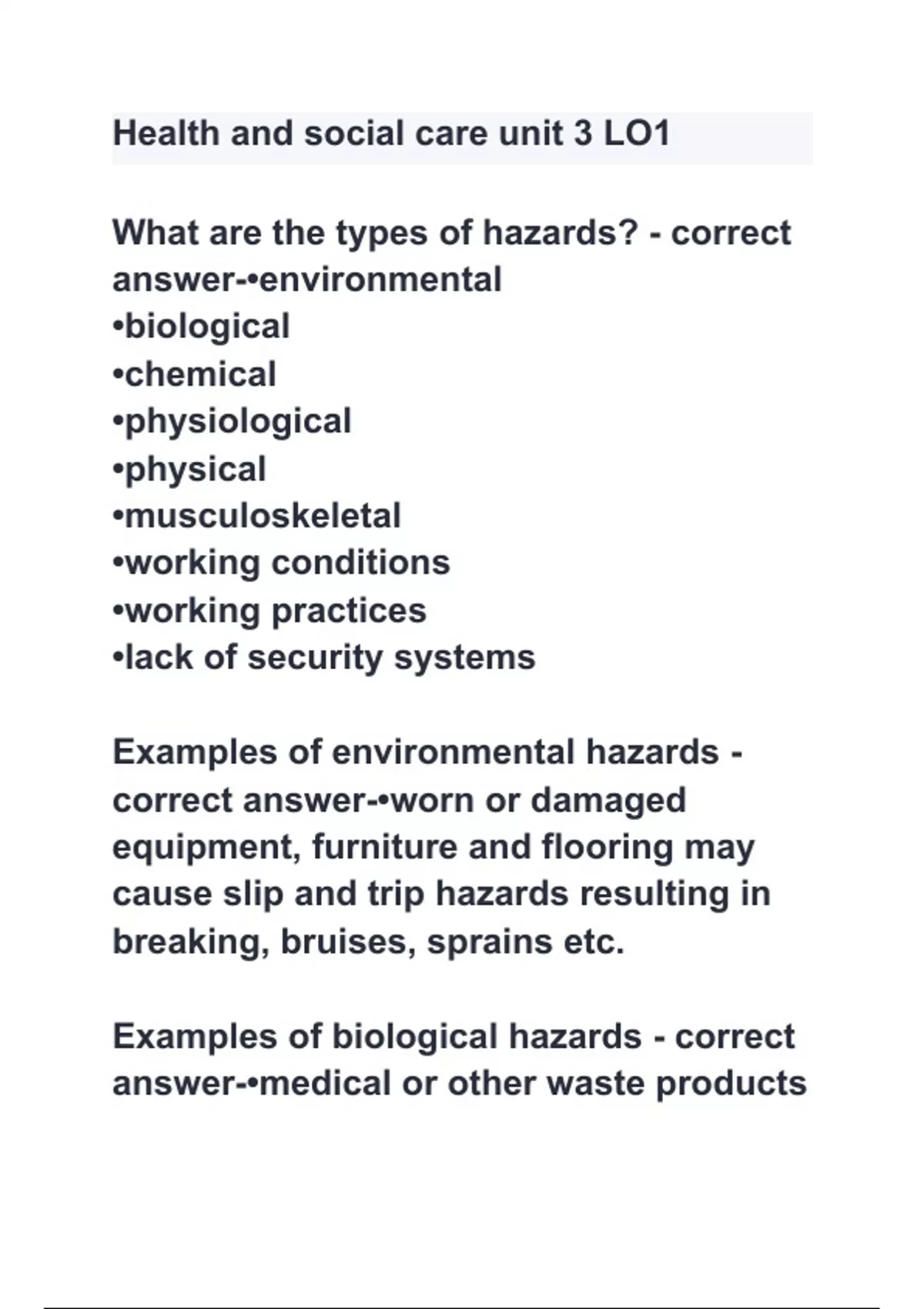 Health and social care unit 3 LO1 Questions with 100% Actual correct answers | verified | latest update | Graded A+ | Already Passed | Complete Solution